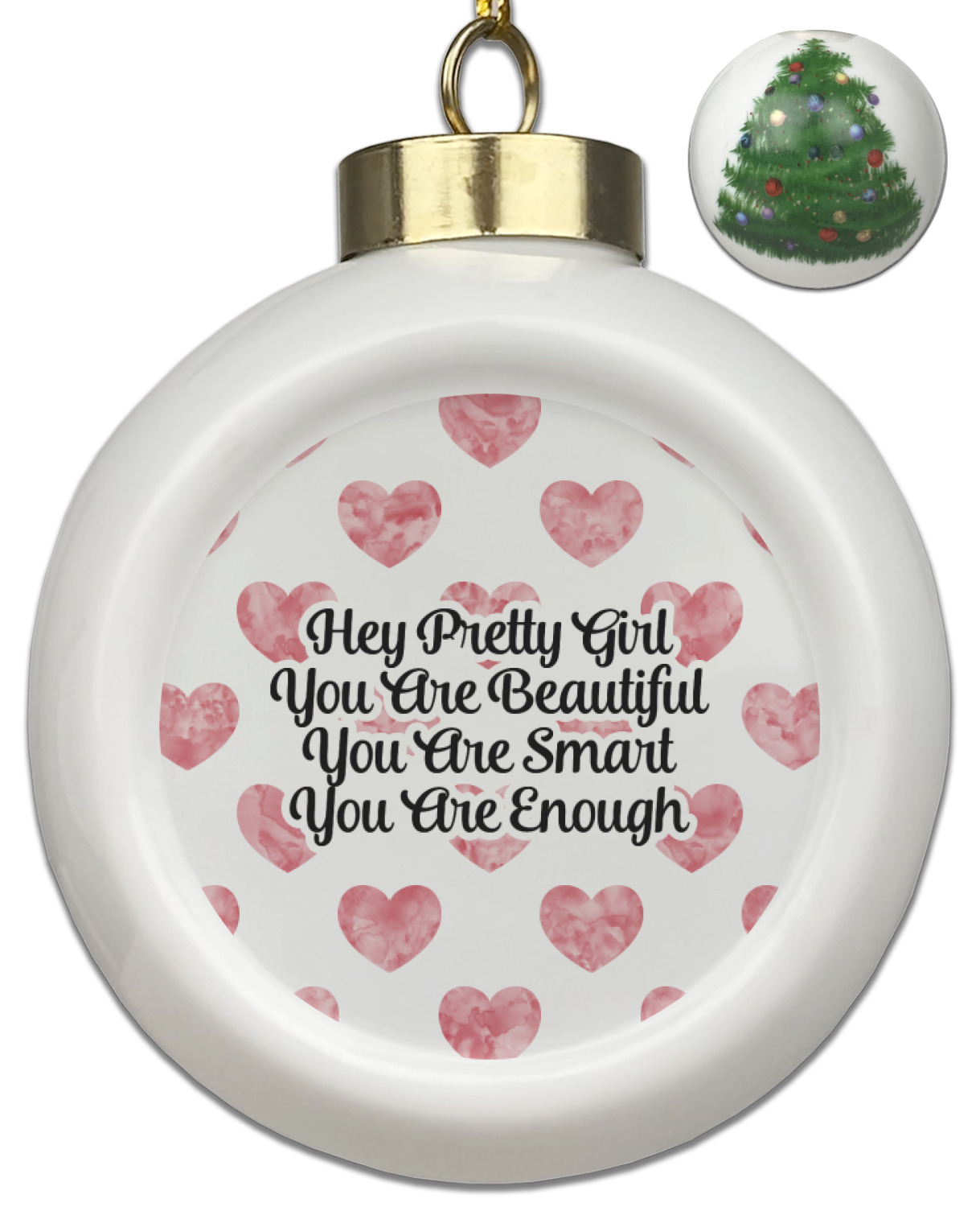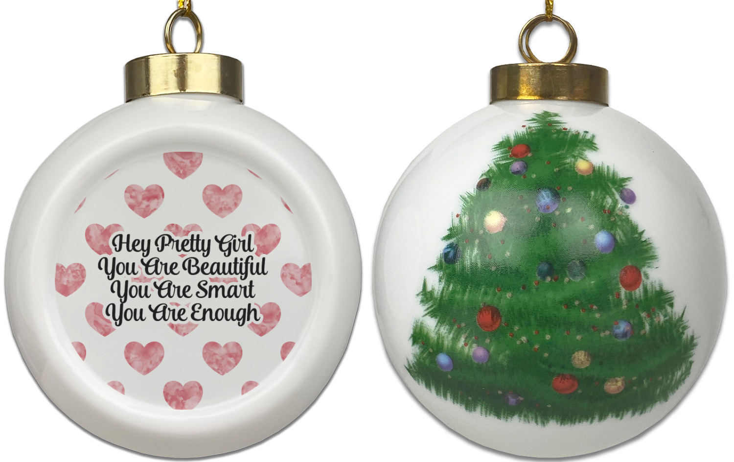 Our Christmas ornaments are a unique ceramic ball shape with a twist as it has a flat face to display your custom design! Select from one of our two design types - Christmas Tree or Poinsettia Garland - to adorn the curved back of your personal design. Each ornament measures 3H x 2.5W x 2D accompanied with a gold string accent for finishing touches to hang on your beautiful Christmas tree!