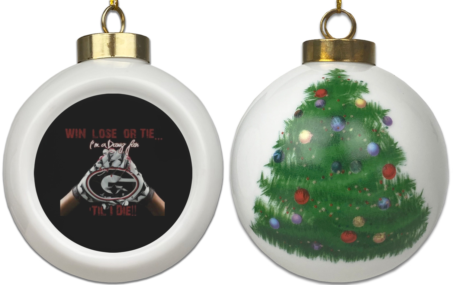 Our Christmas ornaments are a unique ceramic ball shape with a twist as it has a flat face to display your custom design! Select from one of our two design types - Christmas Tree or Poinsettia Garland - to adorn the curved back of your personal design. Each ornament measures 3H x 2.5W x 2D accompanied with a gold string accent for finishing touches to hang on your beautiful Christmas tree!