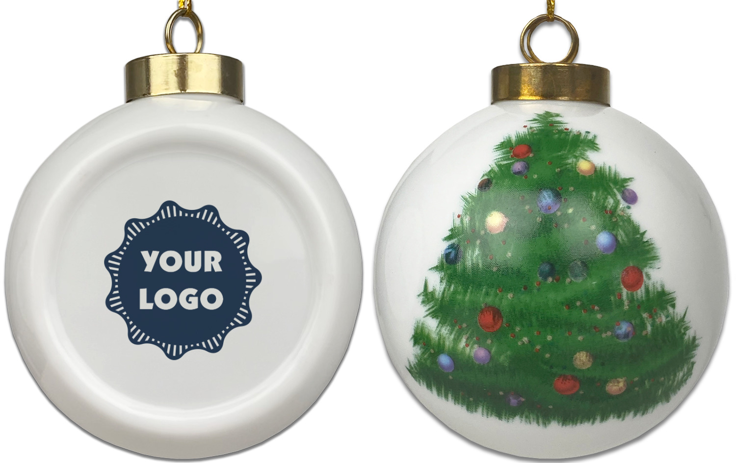 Our Christmas ornaments are a unique ceramic ball shape with a twist as it has a flat face to display your custom design! Select from one of our two design types - Christmas Tree or Poinsettia Garland - to adorn the curved back of your personal design. Each ornament measures 3H x 2.5W x 2D accompanied with a gold string accent for finishing touches to hang on your beautiful Christmas tree!