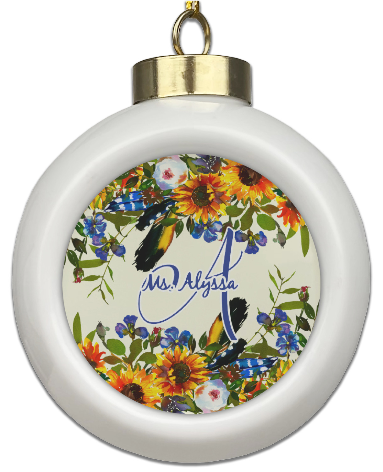 Our Christmas ornaments are a unique ceramic ball shape with a twist as it has a flat face to display your custom design! Select from one of our two design types - Christmas Tree or Poinsettia Garland - to adorn the curved back of your personal design. Each ornament measures 3H x 2.5W x 2D accompanied with a gold string accent for finishing touches to hang on your beautiful Christmas tree!