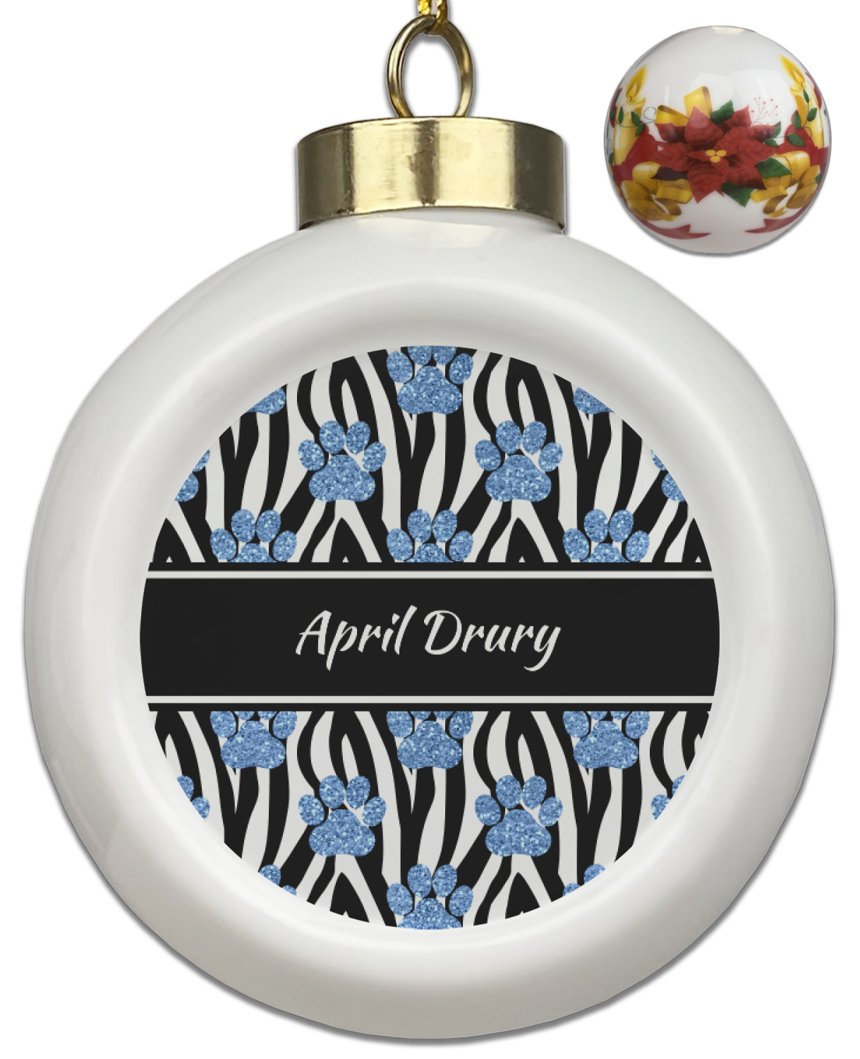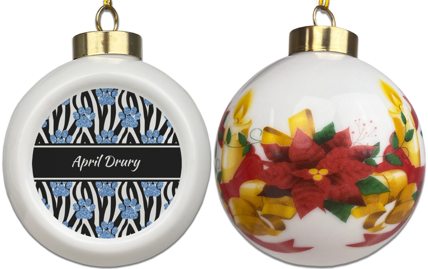 Customer Design on Custom Ceramic Ball Ornaments - Poinsettia Garland