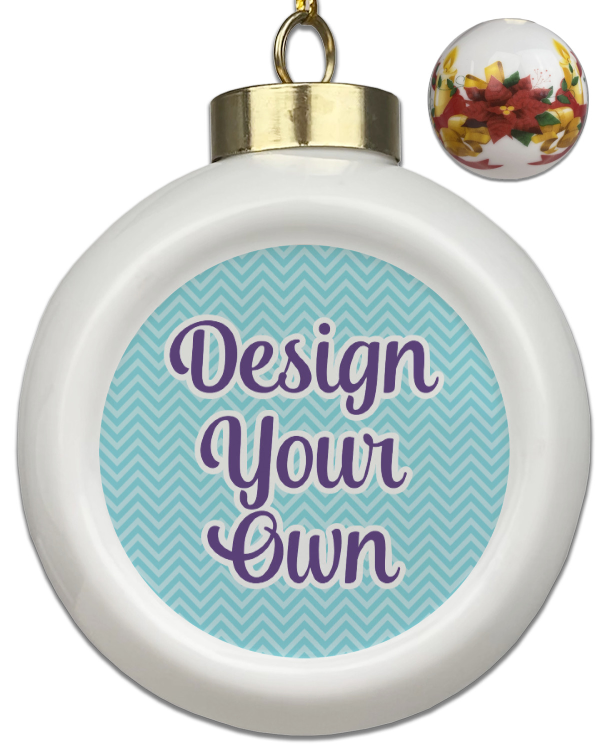 Our Christmas ornaments are a unique ceramic ball shape with a twist as it has a flat face to display your custom design! Select from one of our two design types - Christmas Tree or Poinsettia Garland - to adorn the curved back of your personal design. Each ornament measures 3H x 2.5W x 2D accompanied with a gold string accent for finishing touches to hang on your beautiful Christmas tree!