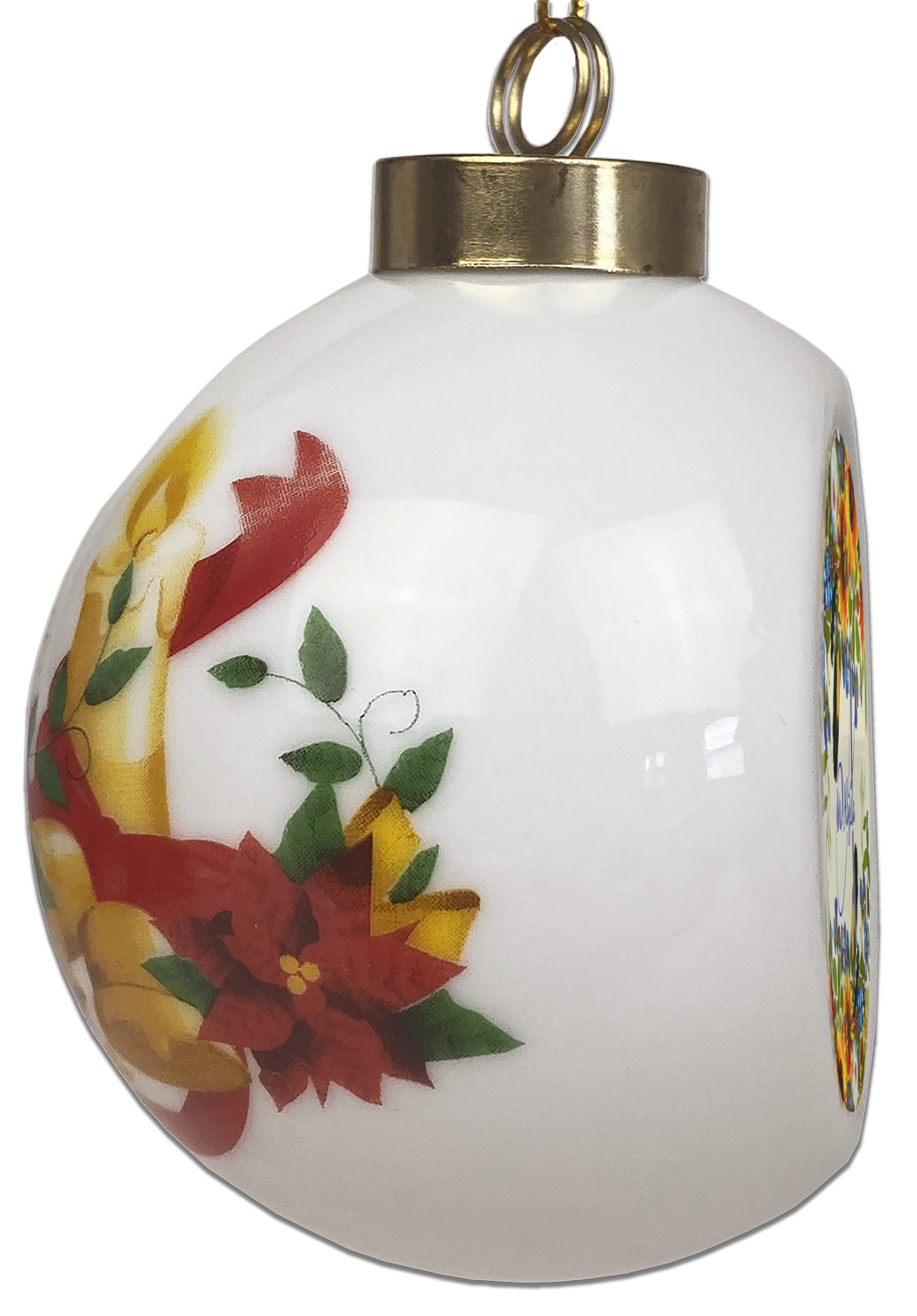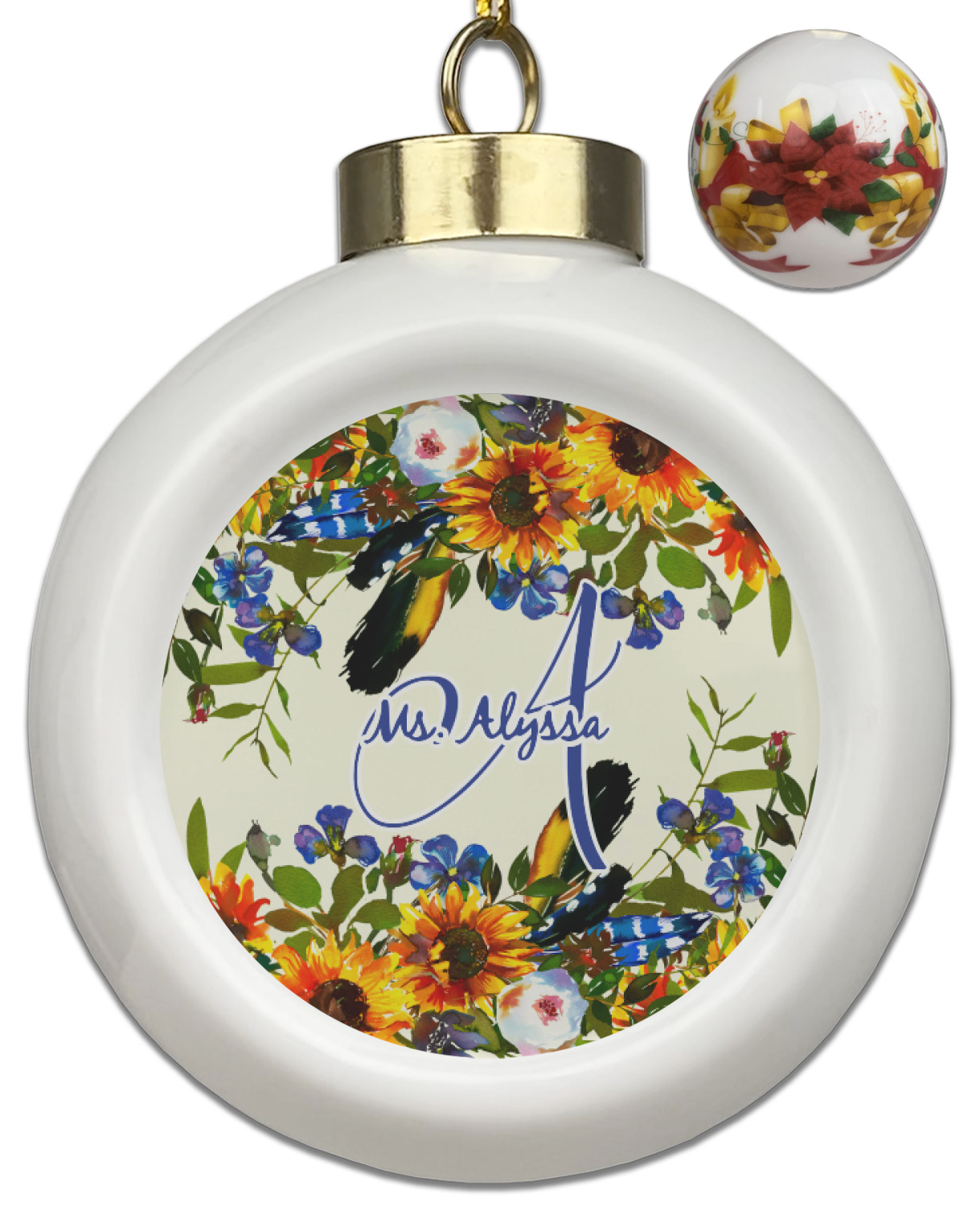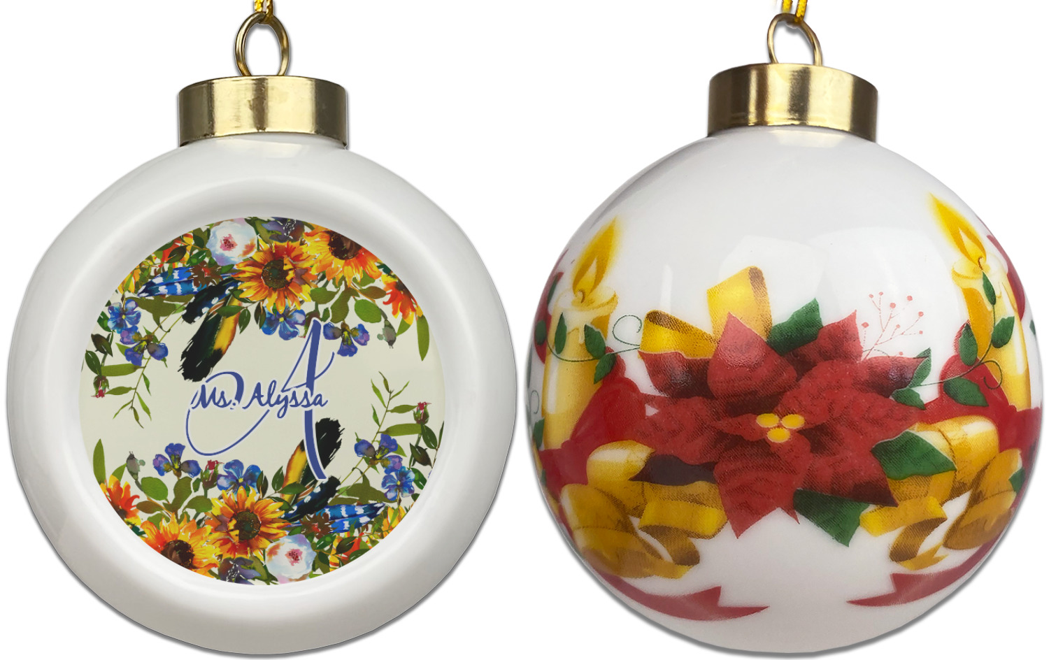 Customer Design on Custom Ceramic Ball Ornaments - Poinsettia Garland