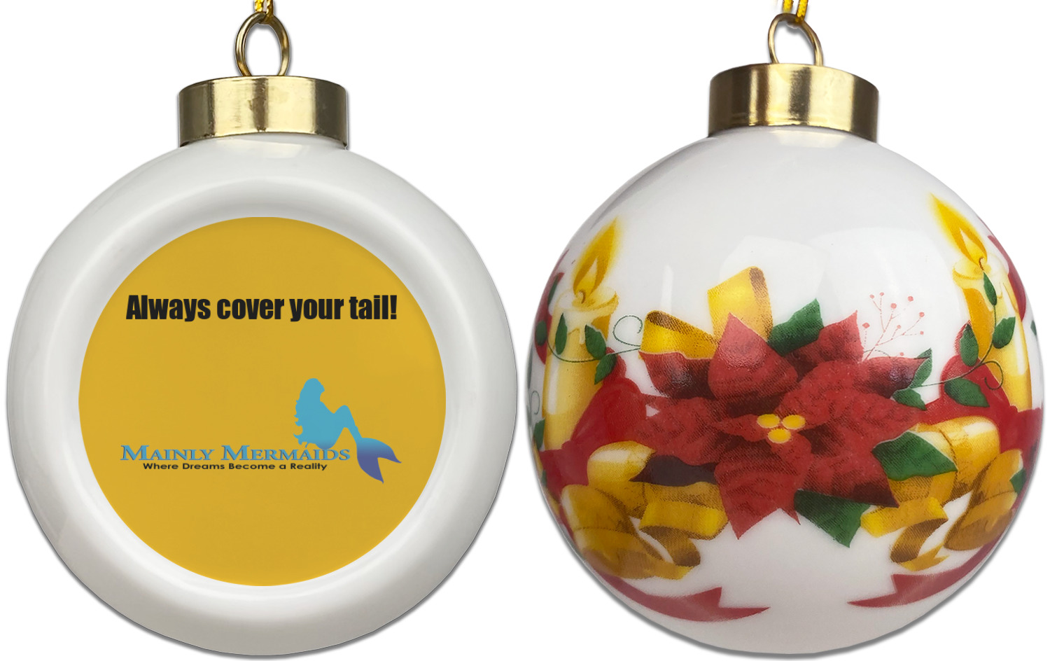 Our Christmas ornaments are a unique ceramic ball shape with a twist as it has a flat face to display your custom design! Select from one of our two design types - Christmas Tree or Poinsettia Garland - to adorn the curved back of your personal design. Each ornament measures 3H x 2.5W x 2D accompanied with a gold string accent for finishing touches to hang on your beautiful Christmas tree!