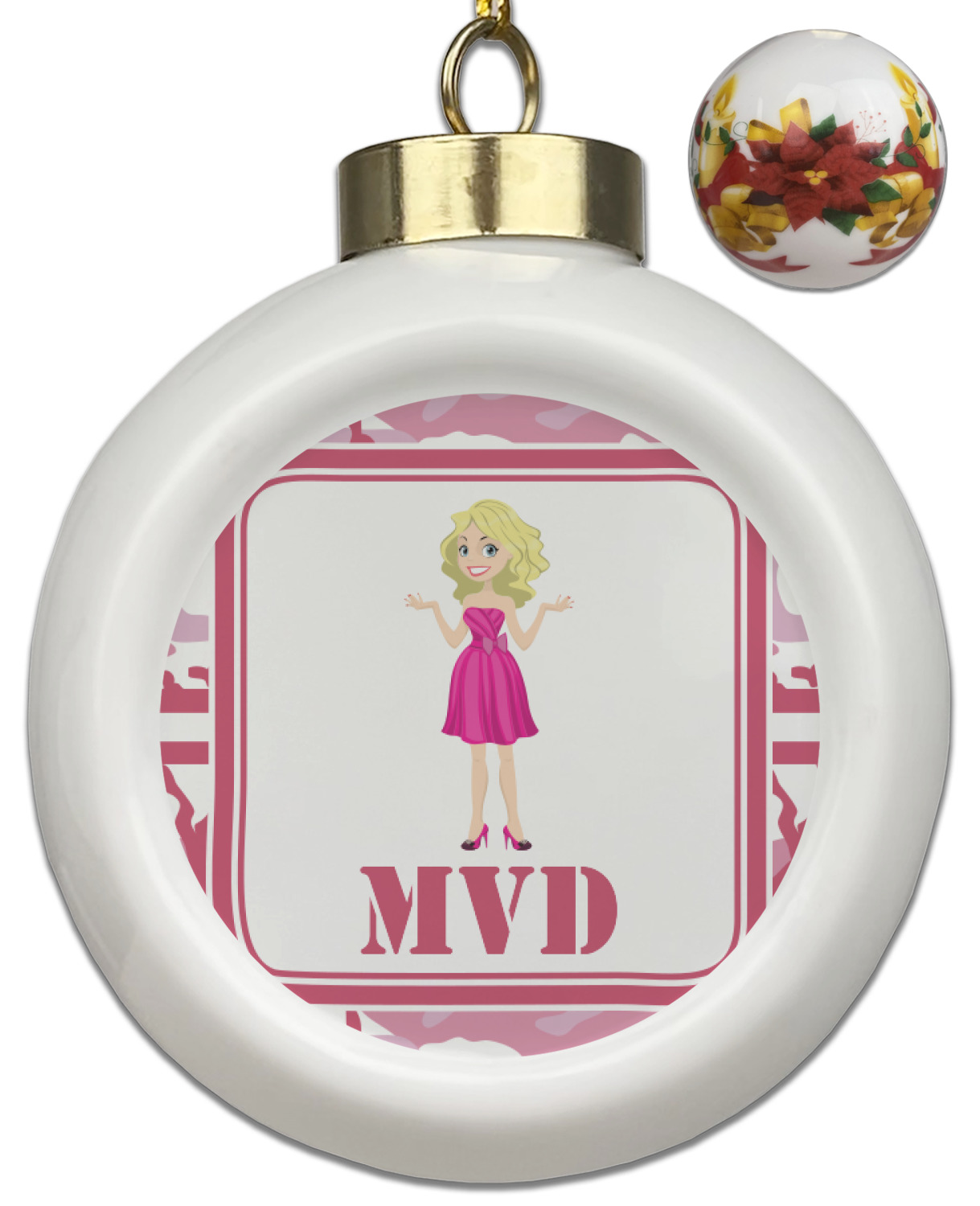 Customer Design on Custom Ceramic Ball Ornaments - Poinsettia Garland
