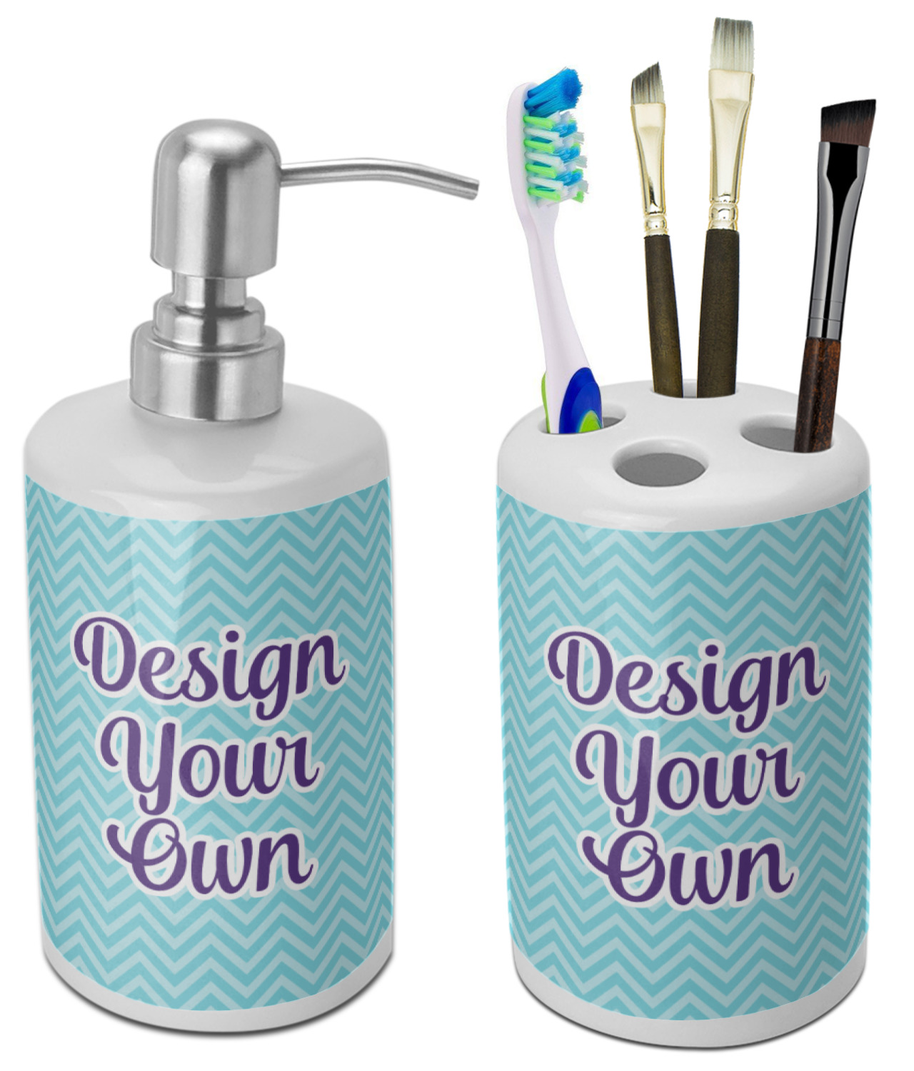 This two piece, ceramic bathroom set will add the perfect splash of color to any bathroom. This set includes one pump dispenser, ideal for soap or lotion, and one toothbrush holder with four holes. Although originally designed for toothbrushes, the holder will also hold make-up brushes, nail files, and other bathroom tools.