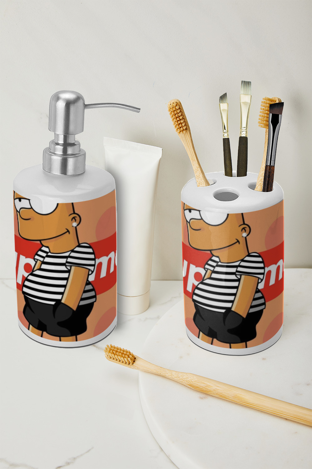 This two piece, ceramic bathroom set will add the perfect splash of color to any bathroom. This set includes one pump dispenser, ideal for soap or lotion, and one toothbrush holder with four holes. Although originally designed for toothbrushes, the holder will also hold make-up brushes, nail files, and other bathroom tools.