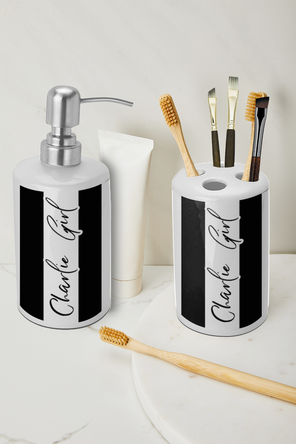 • Toothbrush & Lotion Set: Upgrade your bathroom with this stylish ceramic toothbrush holder and lotion dispenser set.