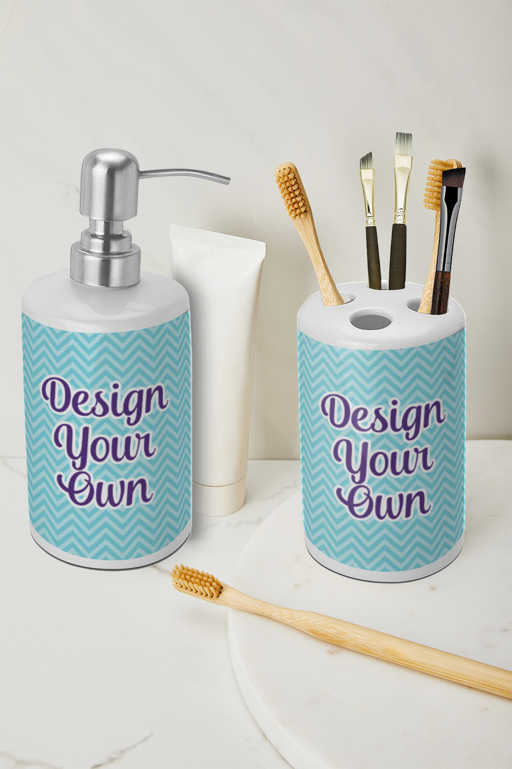 This two piece, ceramic bathroom set will add the perfect splash of color to any bathroom. This set includes one pump dispenser, ideal for soap or lotion, and one toothbrush holder with four holes. Although originally designed for toothbrushes, the holder will also hold make-up brushes, nail files, and other bathroom tools.