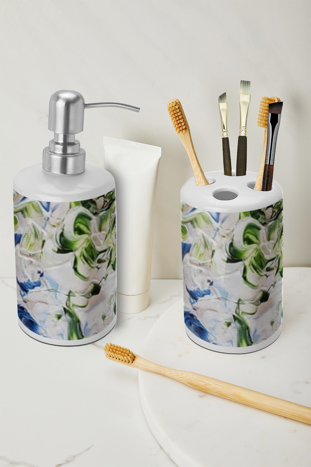 | Product Dimensions | Ceramic Soap / Lotion Dispenser (4" x 3" x 7") Ceramic Toothbrush Holder (3" x 3" x 4.5") |