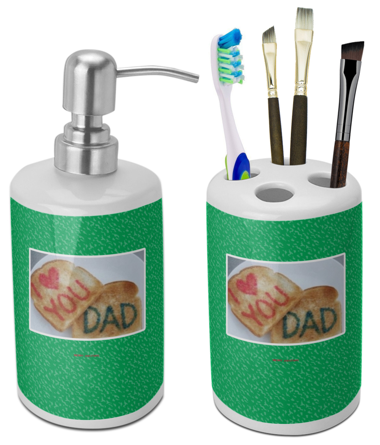 This two piece, ceramic bathroom set will add the perfect splash of color to any bathroom. This set includes one pump dispenser, ideal for soap or lotion, and one toothbrush holder with four holes. Although originally designed for toothbrushes, the holder will also hold make-up brushes, nail files, and other bathroom tools.