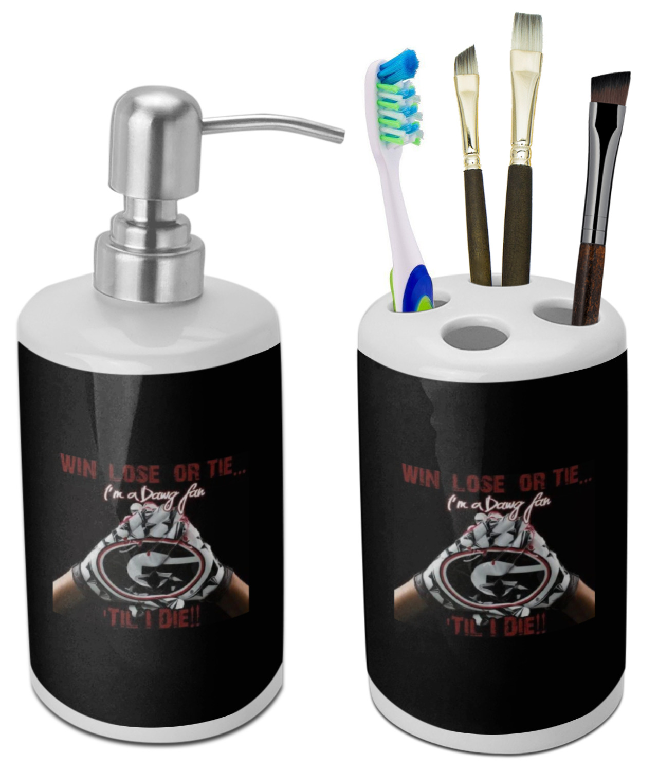 | Product Dimensions | Ceramic Soap / Lotion Dispenser (4" x 3" x 7") Ceramic Toothbrush Holder (3" x 3" x 4.5") |
