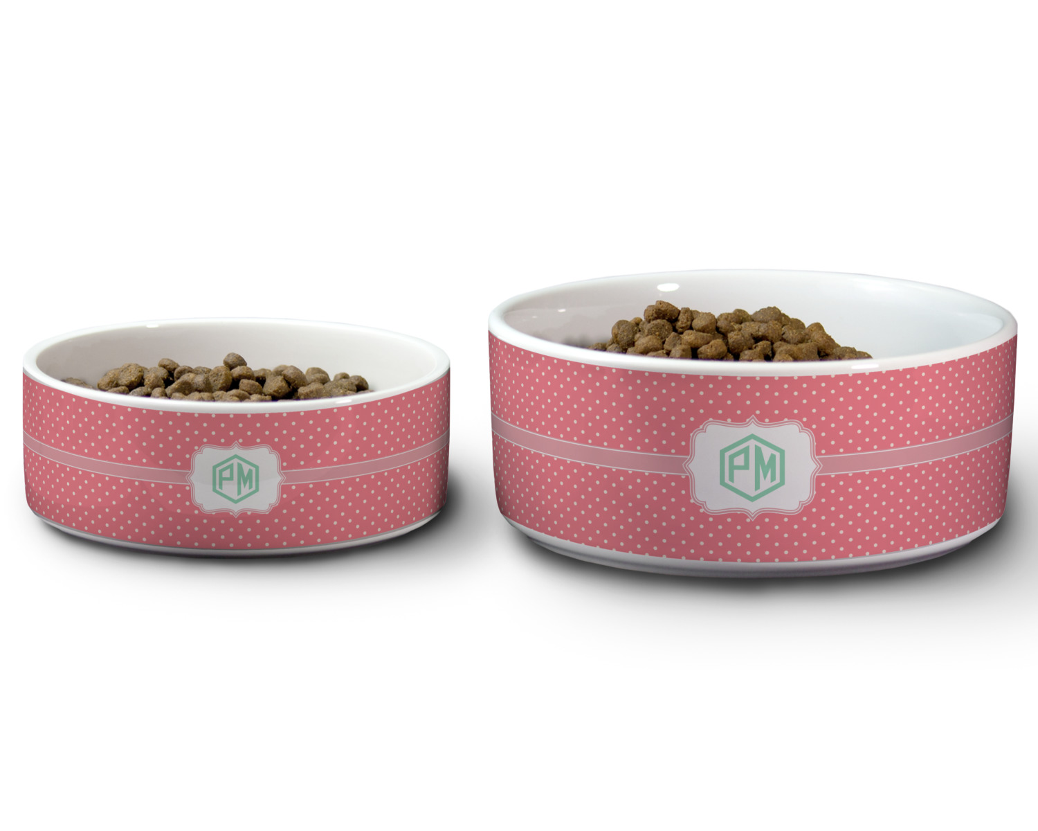 We carry these custom dog bowls in two available sizes: medium and large.The medium is 6 inches in diameter and 2.5 inches tall, and can therefore suit pets who eat up to 2.5 cups of food per meal. The large pet bowl is 7 inches in diameter and 3 inches tall, and suits pets who require up to 4.5 cups of food per meal.