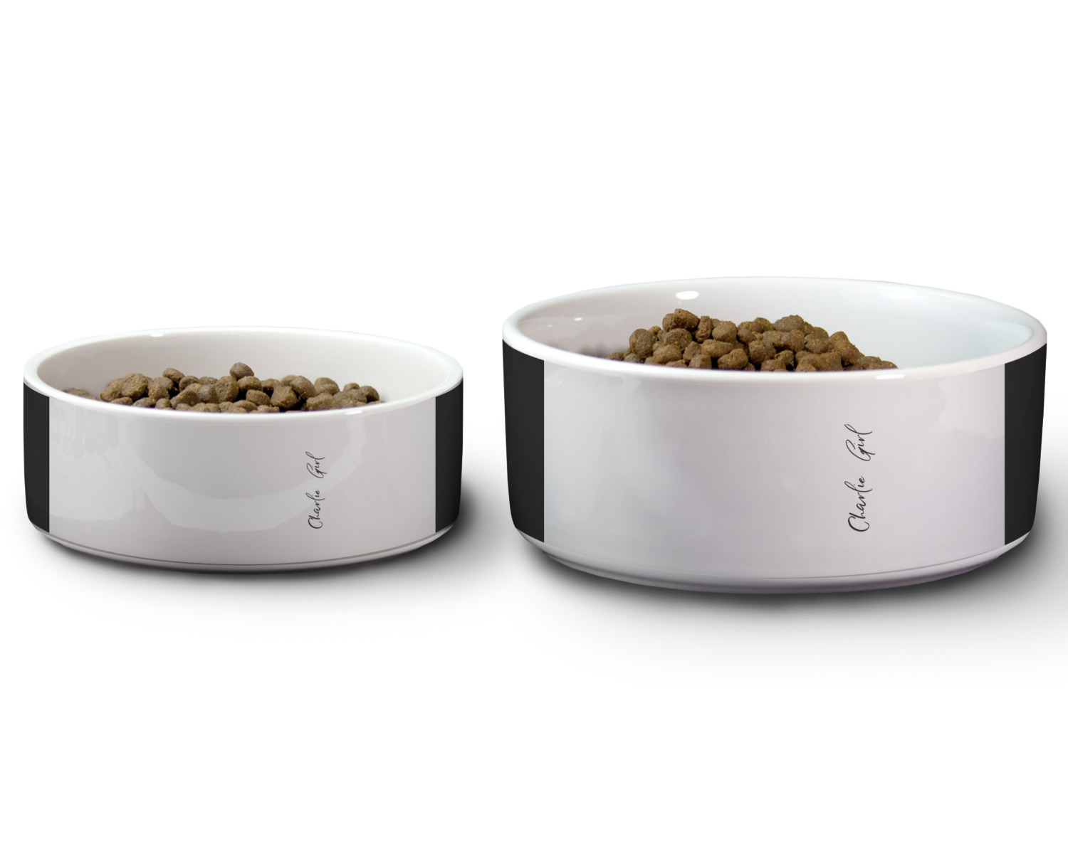 Our customized, ceramic dog bowls allow you to fashion a durable, yet expressive gift for your pet. These bowls are fashionably versatile; they suit both cats and dogs and can hold either food or water. Add your pet's name or favorite color to the design, and spruce up his/her eating area with one or two personalized pet bowls!