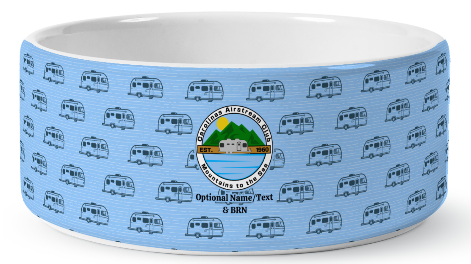 Carolina Airstream Club Design on Custom Ceramic Dog Bowl