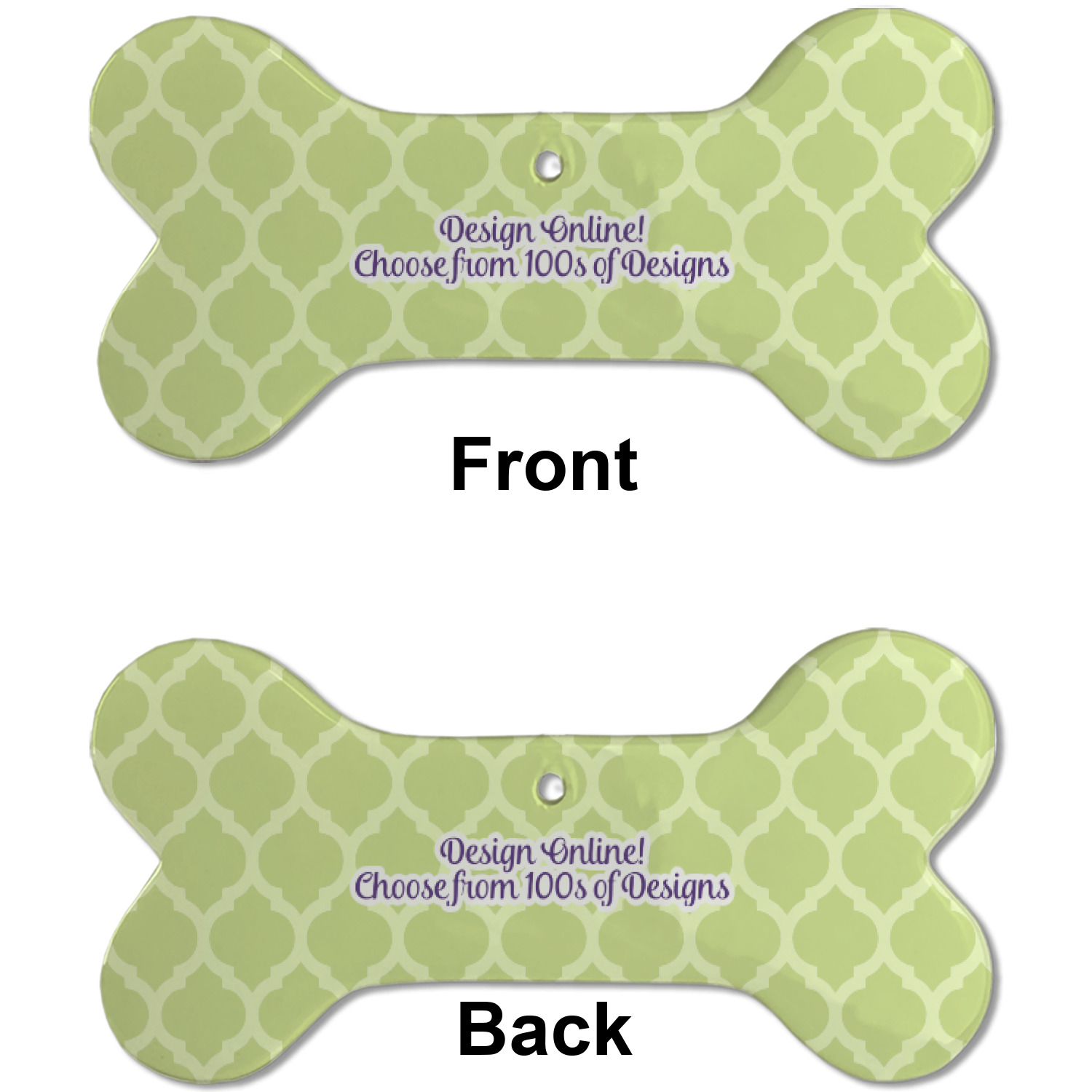 Our dog Christmas ornaments are a ceramic material with a bone-shaped structure hung horizontally. We offer two printing styles to personalize your furry friend's ornament! Choose a one-sided printing, perfect for wall decor, memorial accessory, or doghouse nameplate! Create a double-sided ornament perfect for adorning the Christmas tree. Each dog bone ornament is approximately 4.75" x 2.25" and is printed here in the USA.