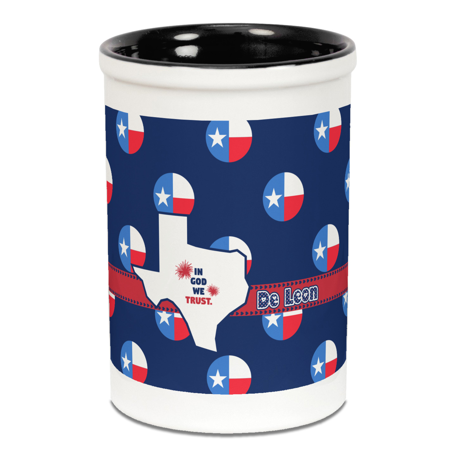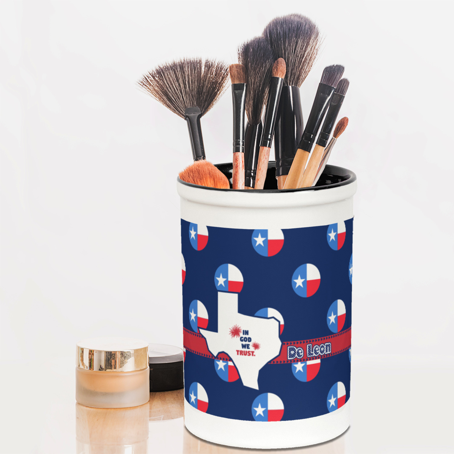 Need help with keeping the workspace clean and tidy? Try using our customizable pencil holders! They're great desk accents for the office, kids desk, or even vanity mirror. Our custom pencil holders are ideal for holding pens, pencils, and even brushes to keep your area from any clutters. The best part about our custom desk pen organizers is the two-toned look! Choose one from either our black or blue interior and customize the outside of the pencil holder with your own personalized design! Use our online design studio to create logos, monograms, or even print a favorite photo to display on the cup holder! Create a cute pencil holder for the kid's desk, or add a cool design to hold any brushes. The options are endless!