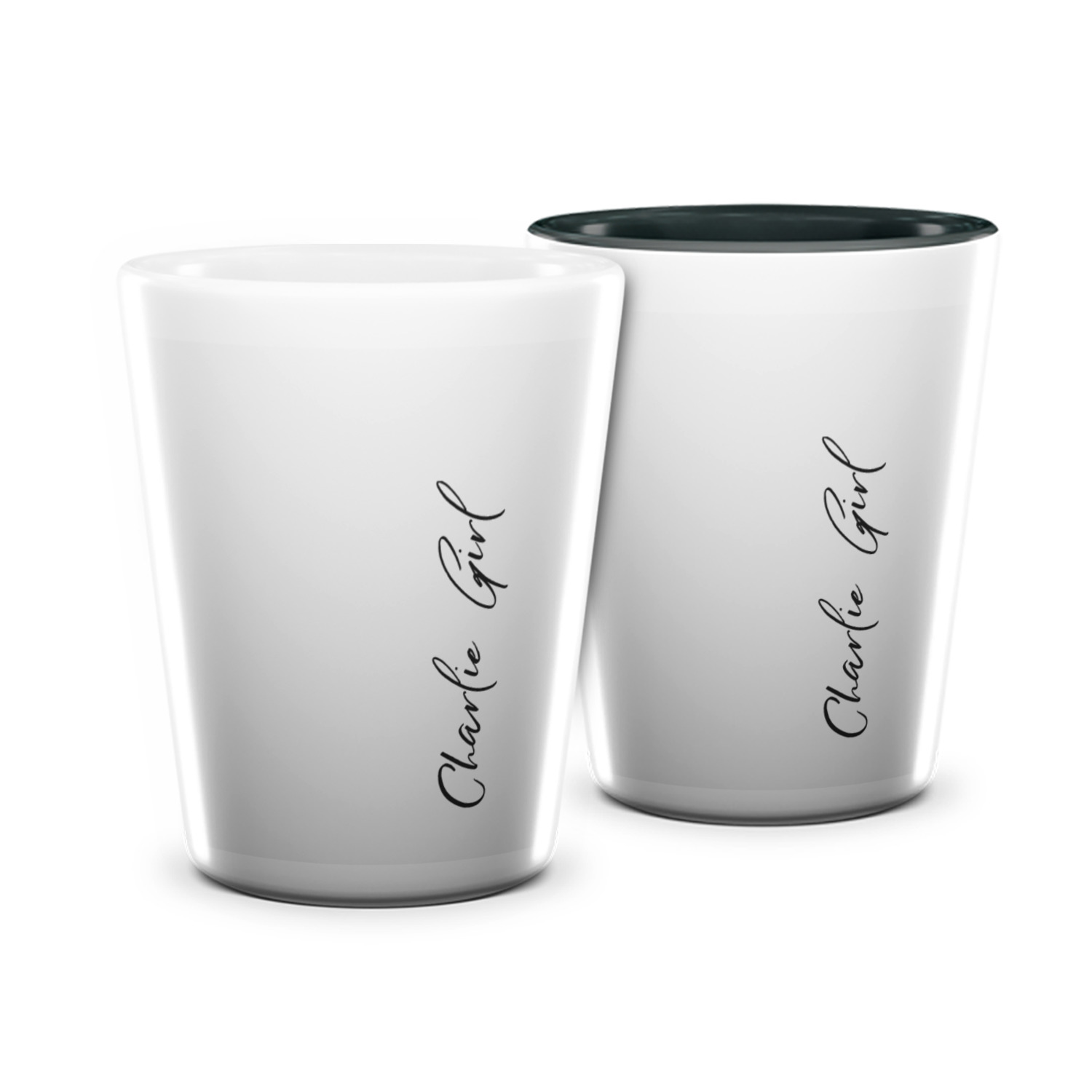 Made from ceramic these shot glasses are printed in full color with the design of your choice. These are a standard 1.5oz size and stand 2.25" tall. Available in a full white ceramic or a two-tone with a black color inside the shot glass. Buy a single or a set of 4, all of which can be designed separately to get you just what you want and need.