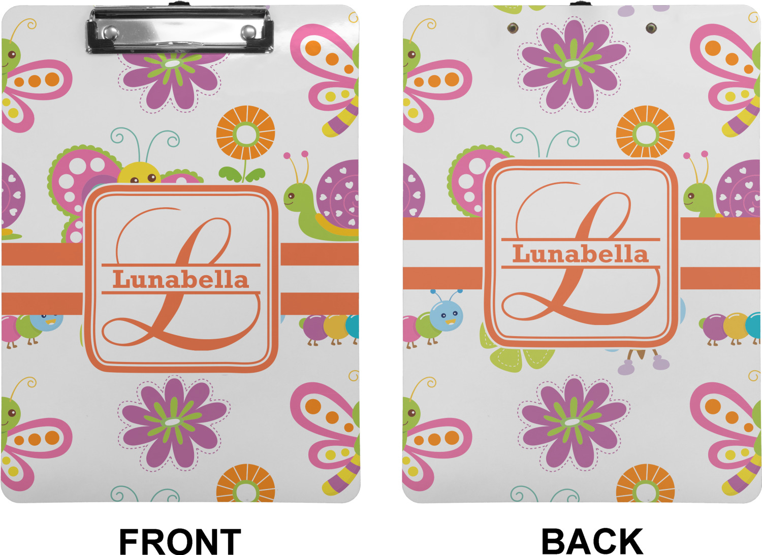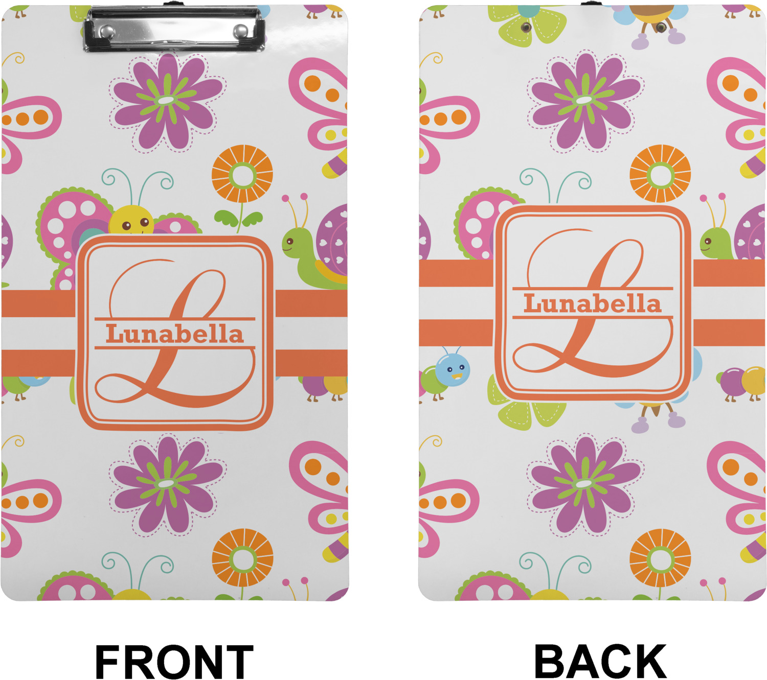 These custom clipboards are made from a strong hardboard and are coated with a glossy finish that accentuates the colors of your design. Alongside a retractable hook at its top, these decorative clipboards also feature sturdy clips to secure several sheets of paper. We sell these clipboards in two separate sizes. Our letter size measures at 12.5" L x 9" W, while our legal clipboard is approximately 15.5" L x 9" W. On both models, your personalization is printed on both sides of this clipboard and can be customized individually.