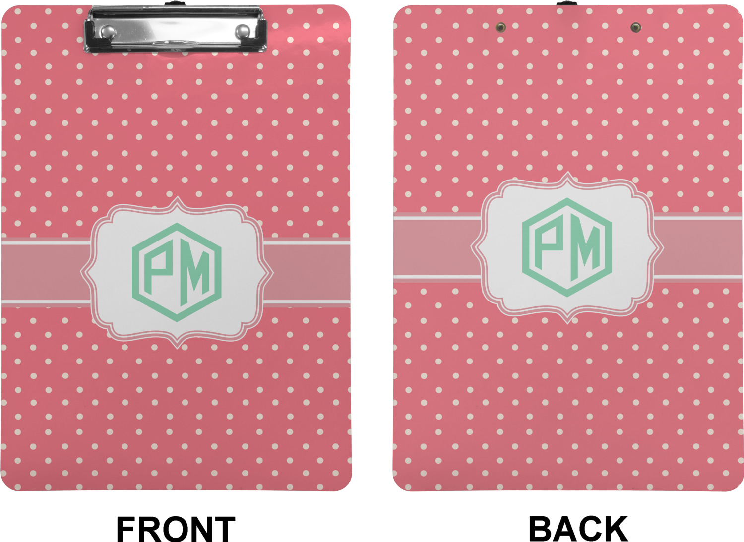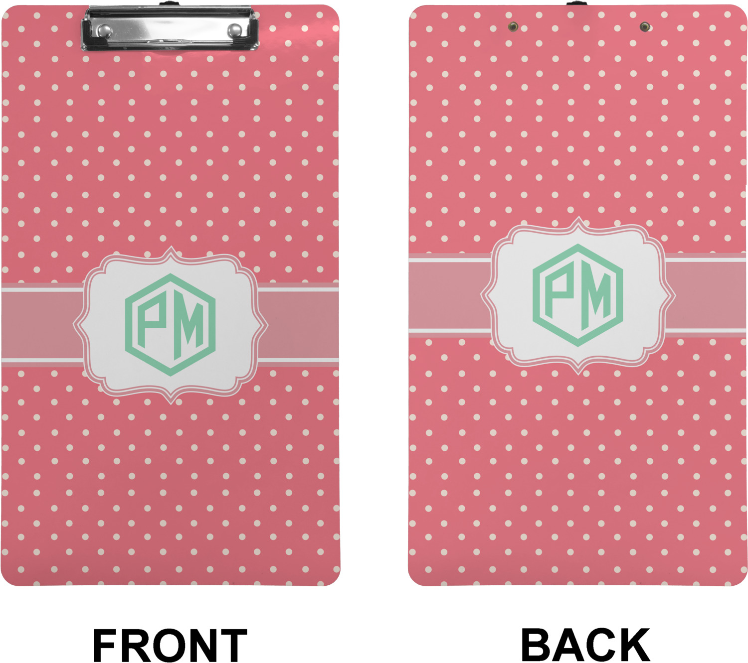These custom clipboards are made from a strong hardboard and are coated with a glossy finish that accentuates the colors of your design. Alongside a retractable hook at its top, these decorative clipboards also feature sturdy clips to secure several sheets of paper. We sell these clipboards in two separate sizes. Our letter size measures at 12.5" L x 9" W, while our legal clipboard is approximately 15.5" L x 9" W. On both models, your personalization is printed on both sides of this clipboard and can be customized individually.