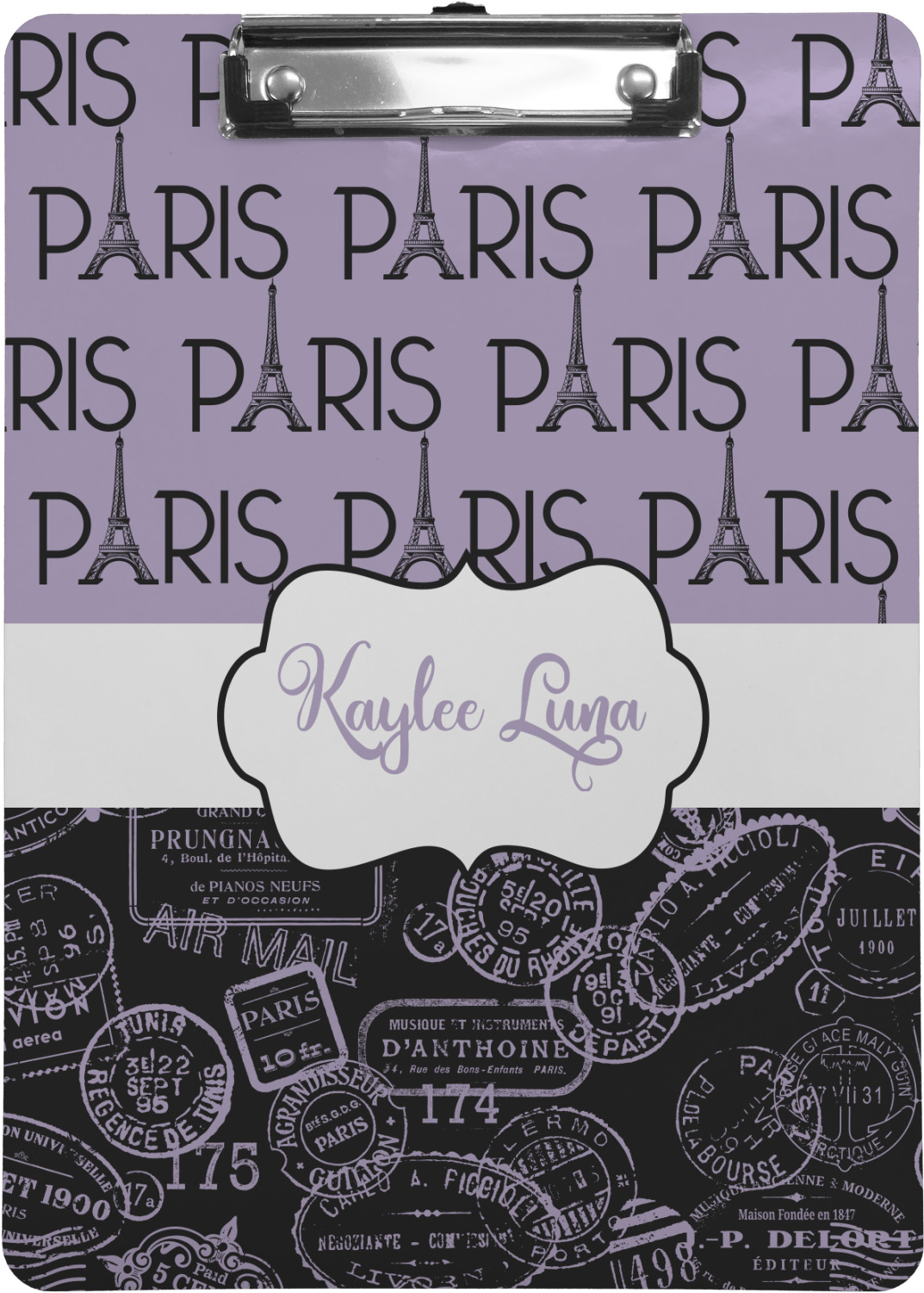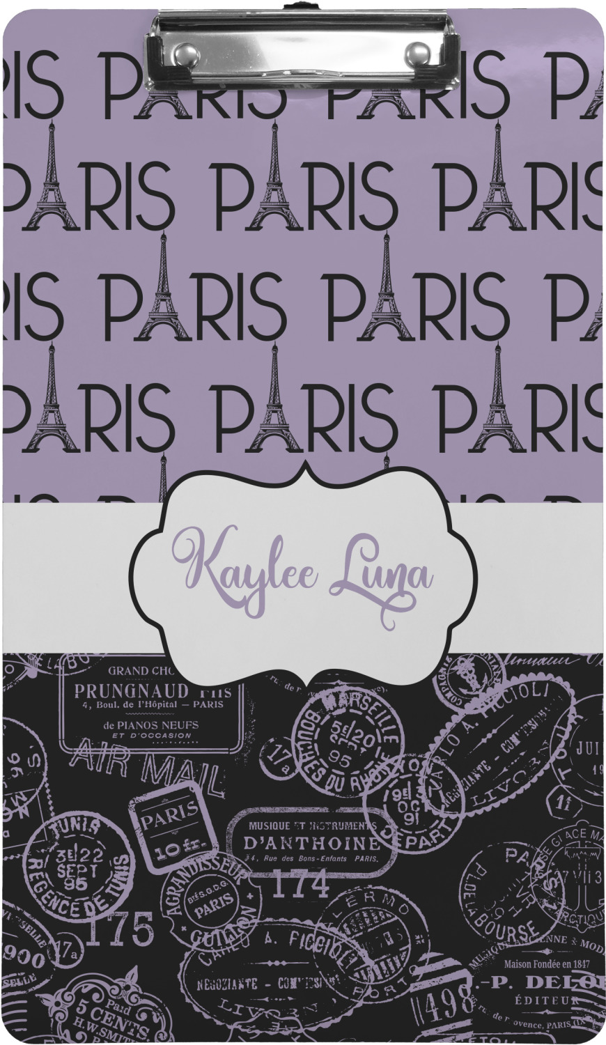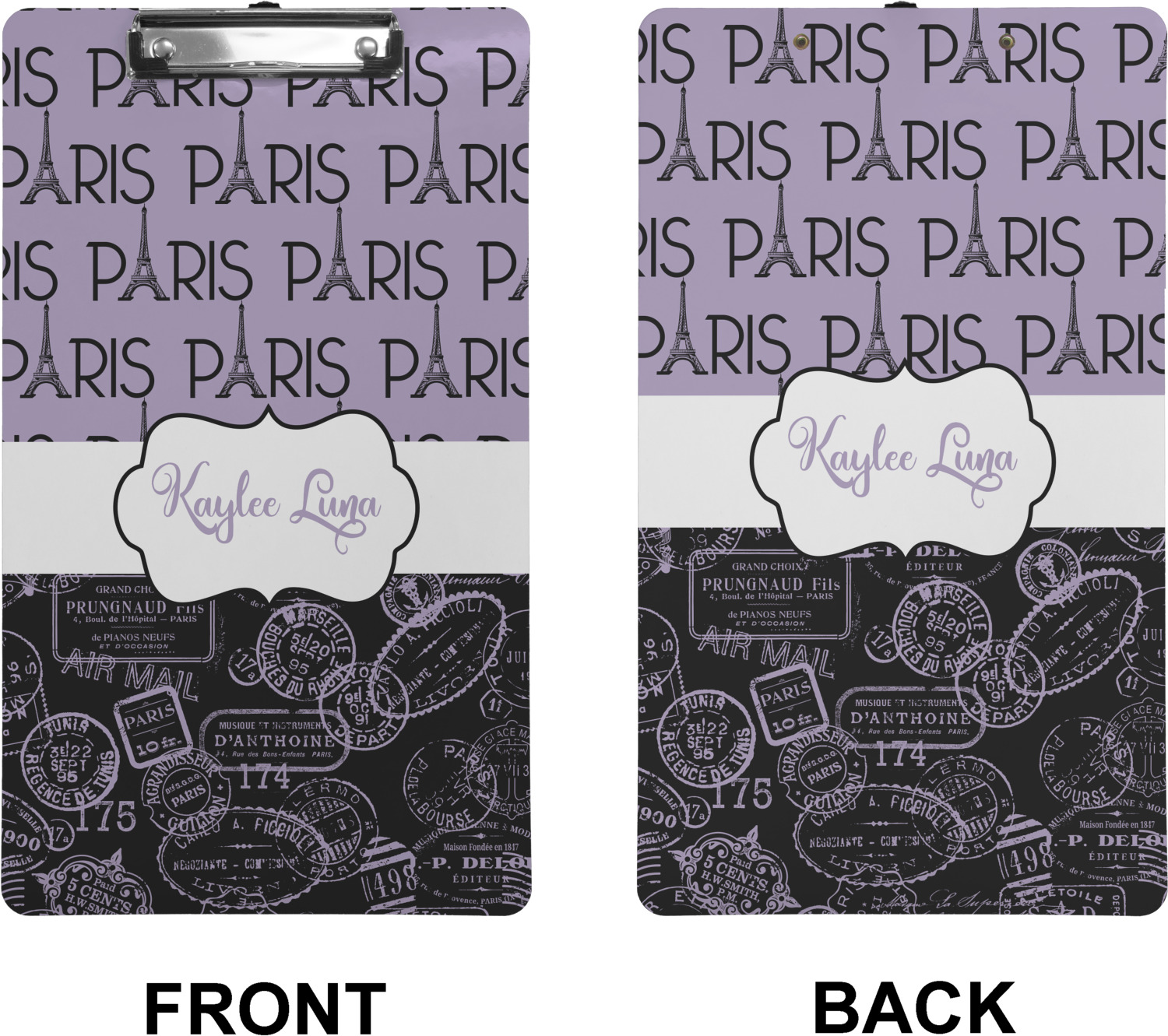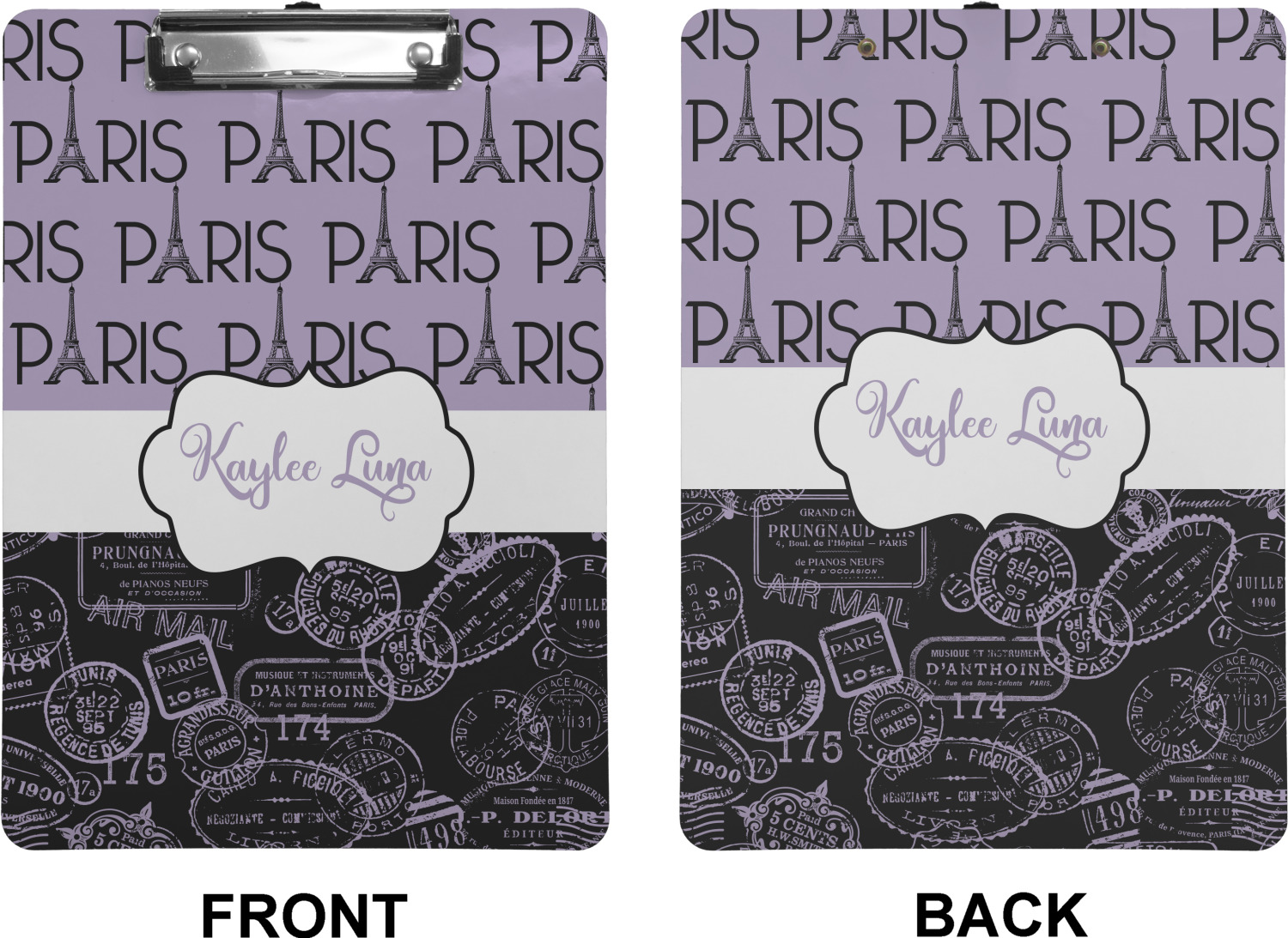 These custom clipboards are made from a strong hardboard and are coated with a glossy finish that accentuates the colors of your design. Alongside a retractable hook at its top, these decorative clipboards also feature sturdy clips to secure several sheets of paper. We sell these clipboards in two separate sizes. Our letter size measures at 12.5" L x 9" W, while our legal clipboard is approximately 15.5" L x 9" W. On both models, your personalization is printed on both sides of this clipboard and can be customized individually.