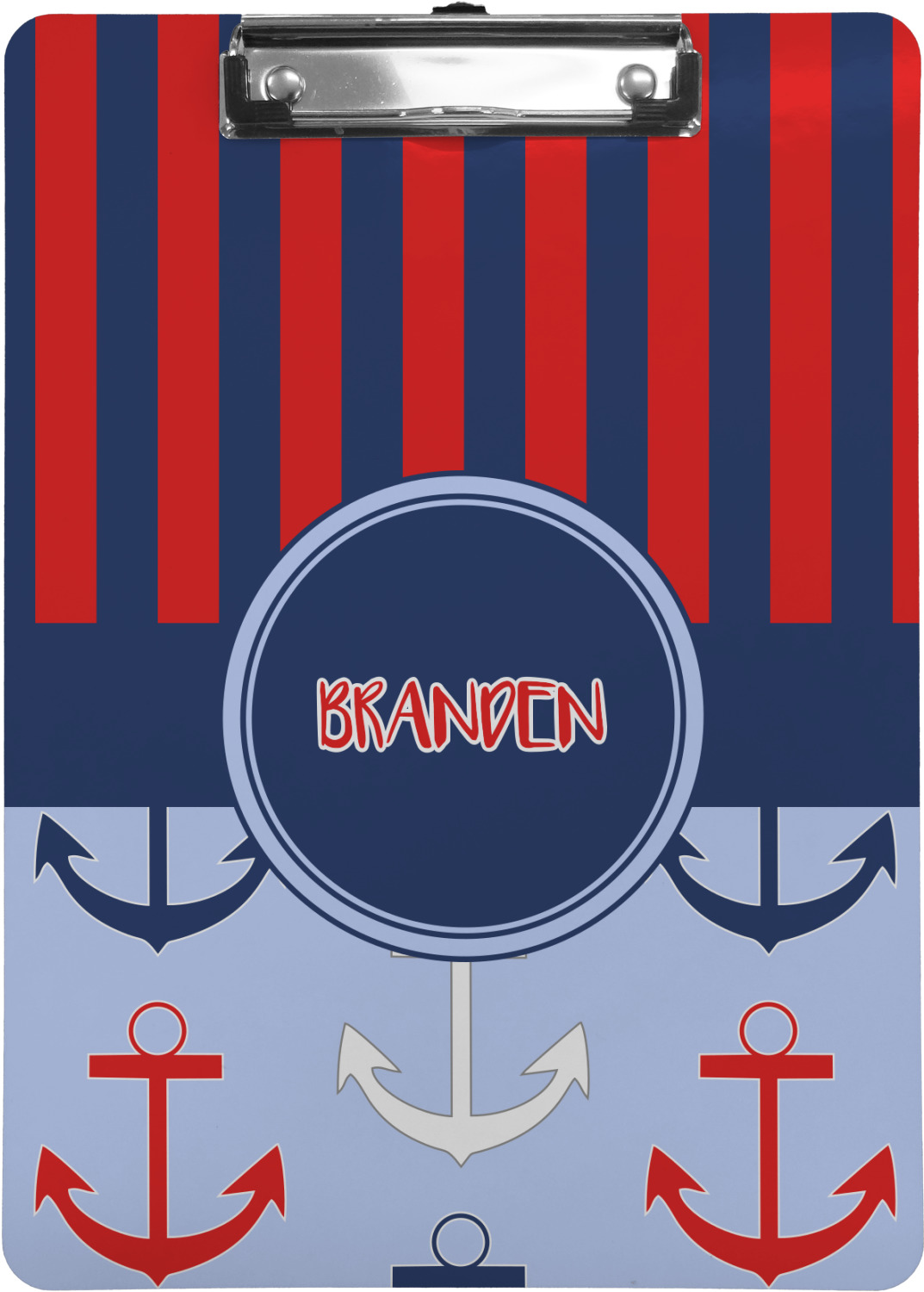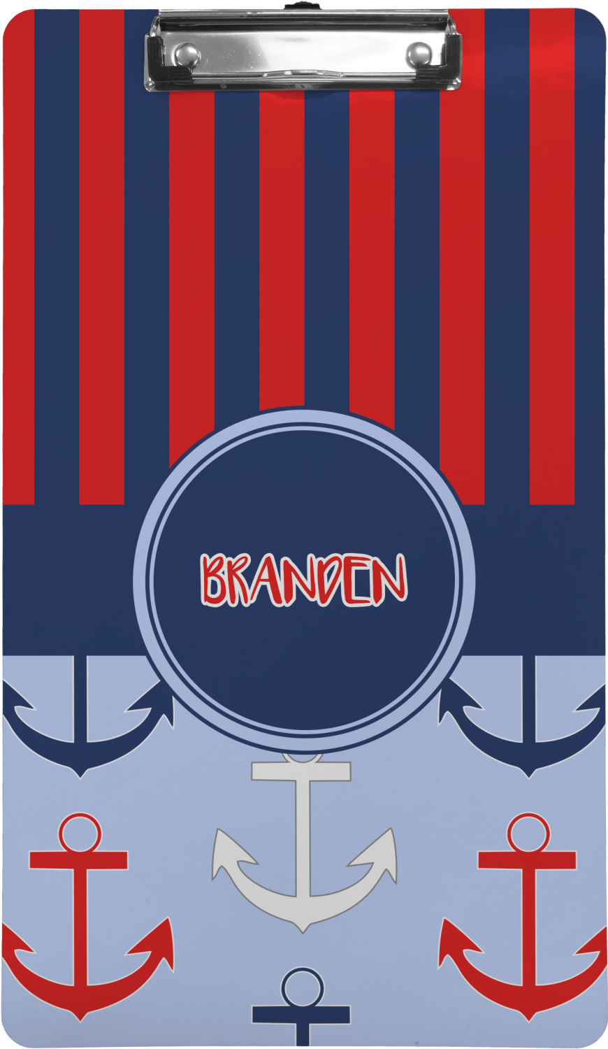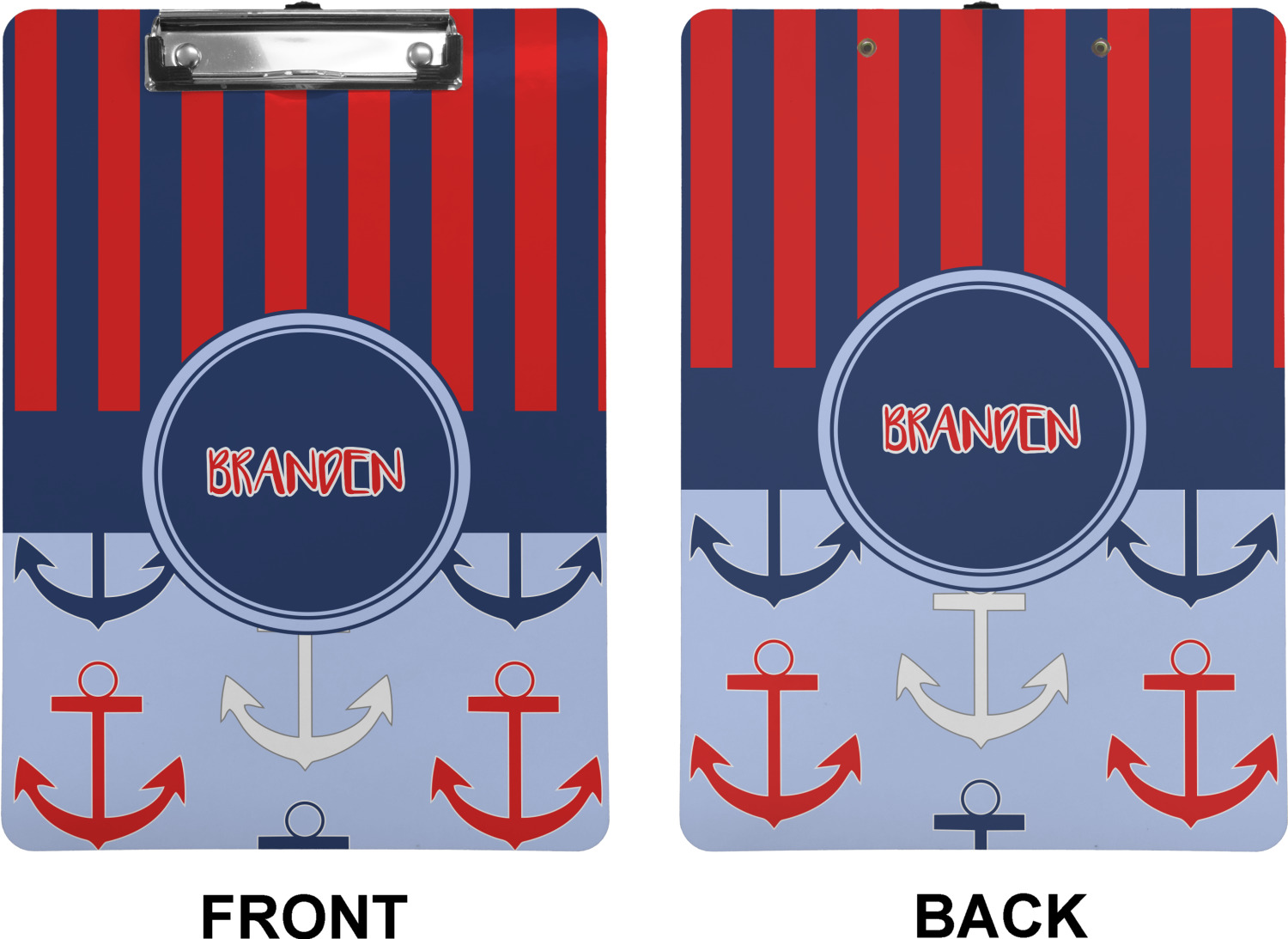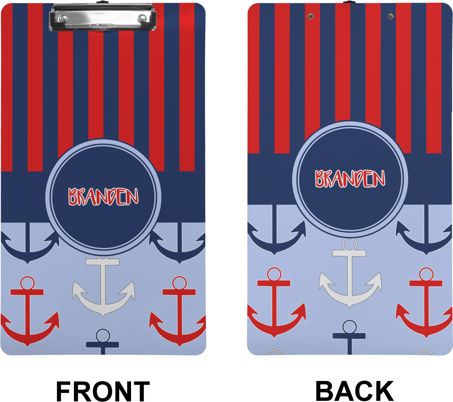 These custom clipboards are made from a strong hardboard and are coated with a glossy finish that accentuates the colors of your design. Alongside a retractable hook at its top, these decorative clipboards also feature sturdy clips to secure several sheets of paper. We sell these clipboards in two separate sizes. Our letter size measures at 12.5" L x 9" W, while our legal clipboard is approximately 15.5" L x 9" W. On both models, your personalization is printed on both sides of this clipboard and can be customized individually.