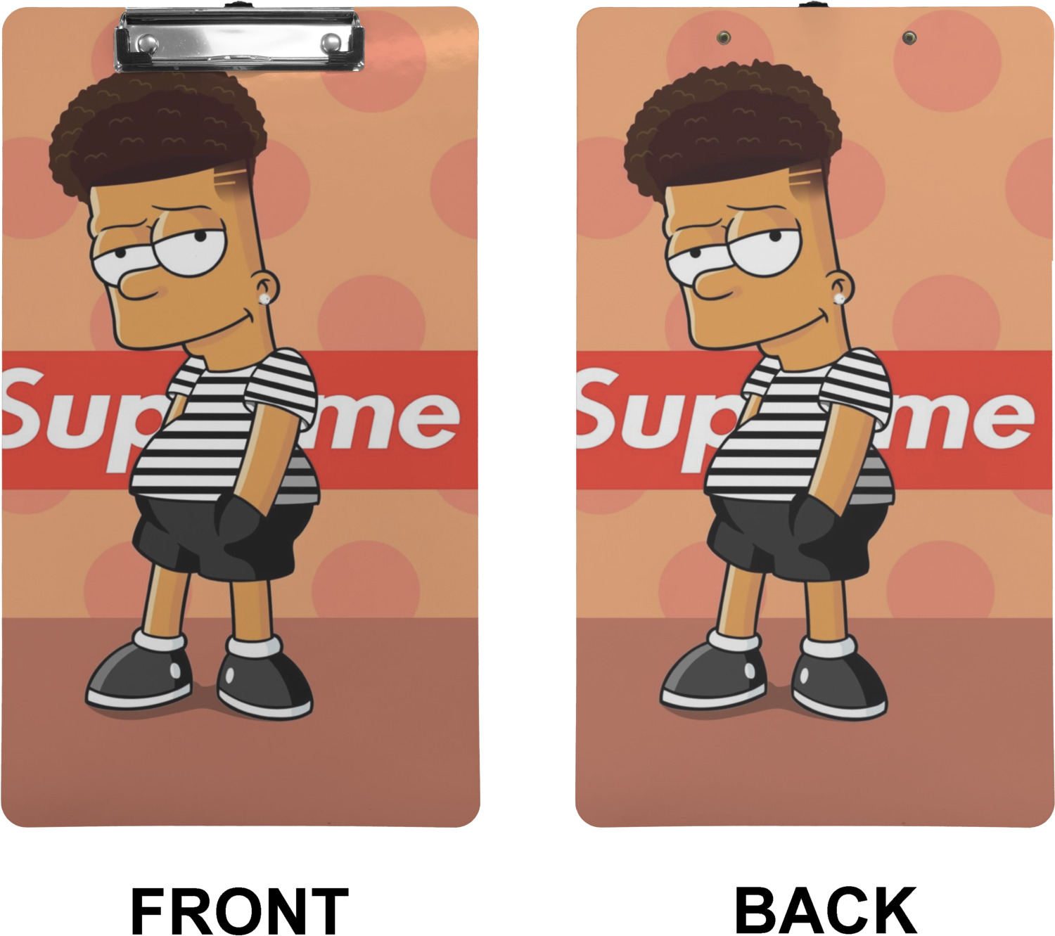 These custom clipboards are made from a strong hardboard and are coated with a glossy finish that accentuates the colors of your design. Alongside a retractable hook at its top, these decorative clipboards also feature sturdy clips to secure several sheets of paper. We sell these clipboards in two separate sizes. Our letter size measures at 12.5" L x 9" W, while our legal clipboard is approximately 15.5" L x 9" W. On both models, your personalization is printed on both sides of this clipboard and can be customized individually.