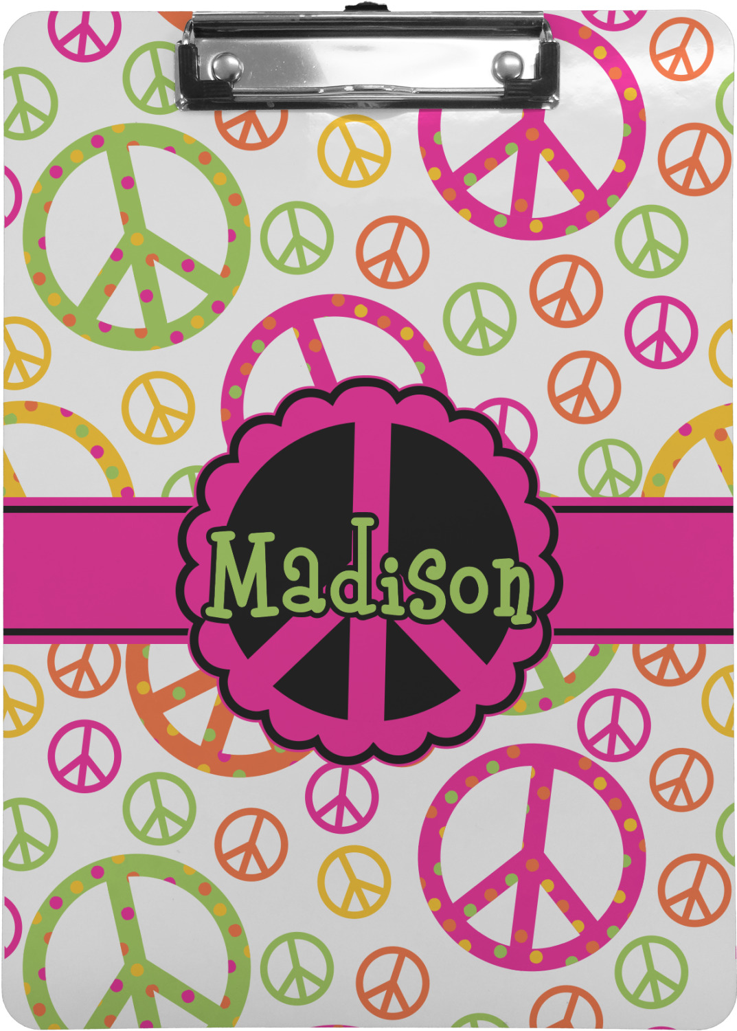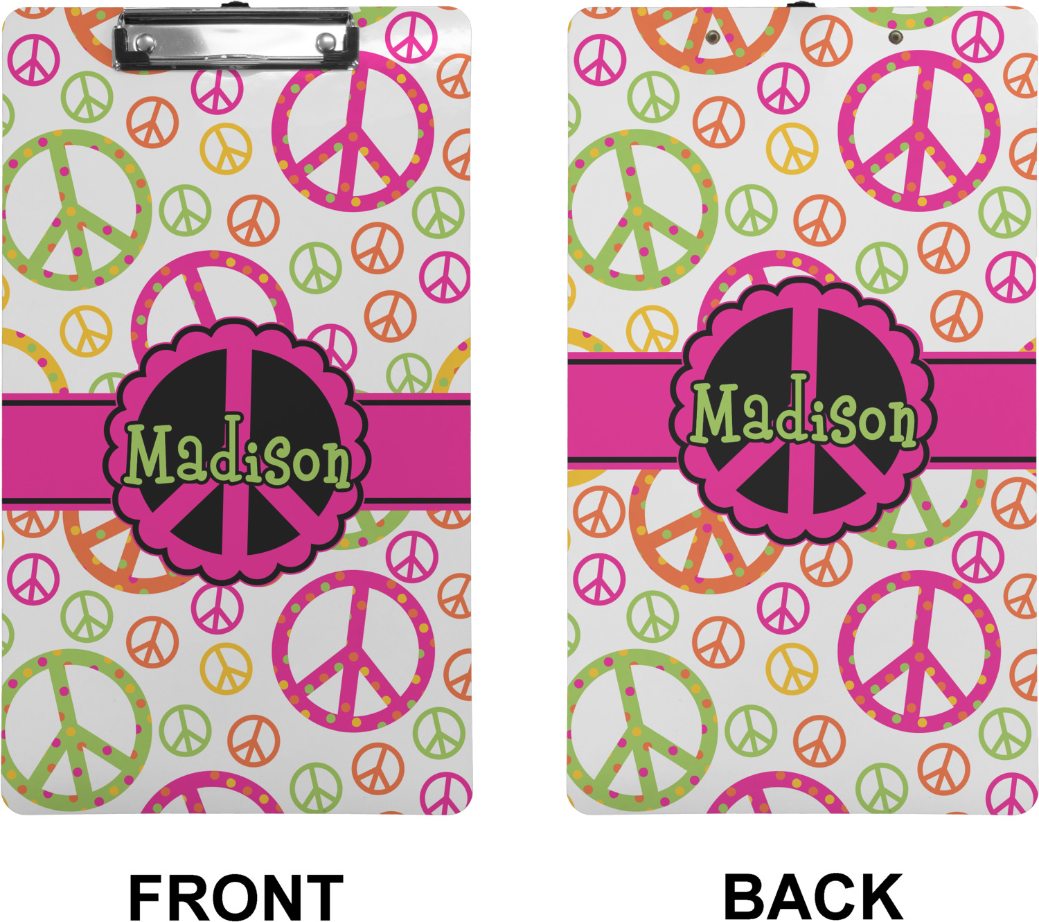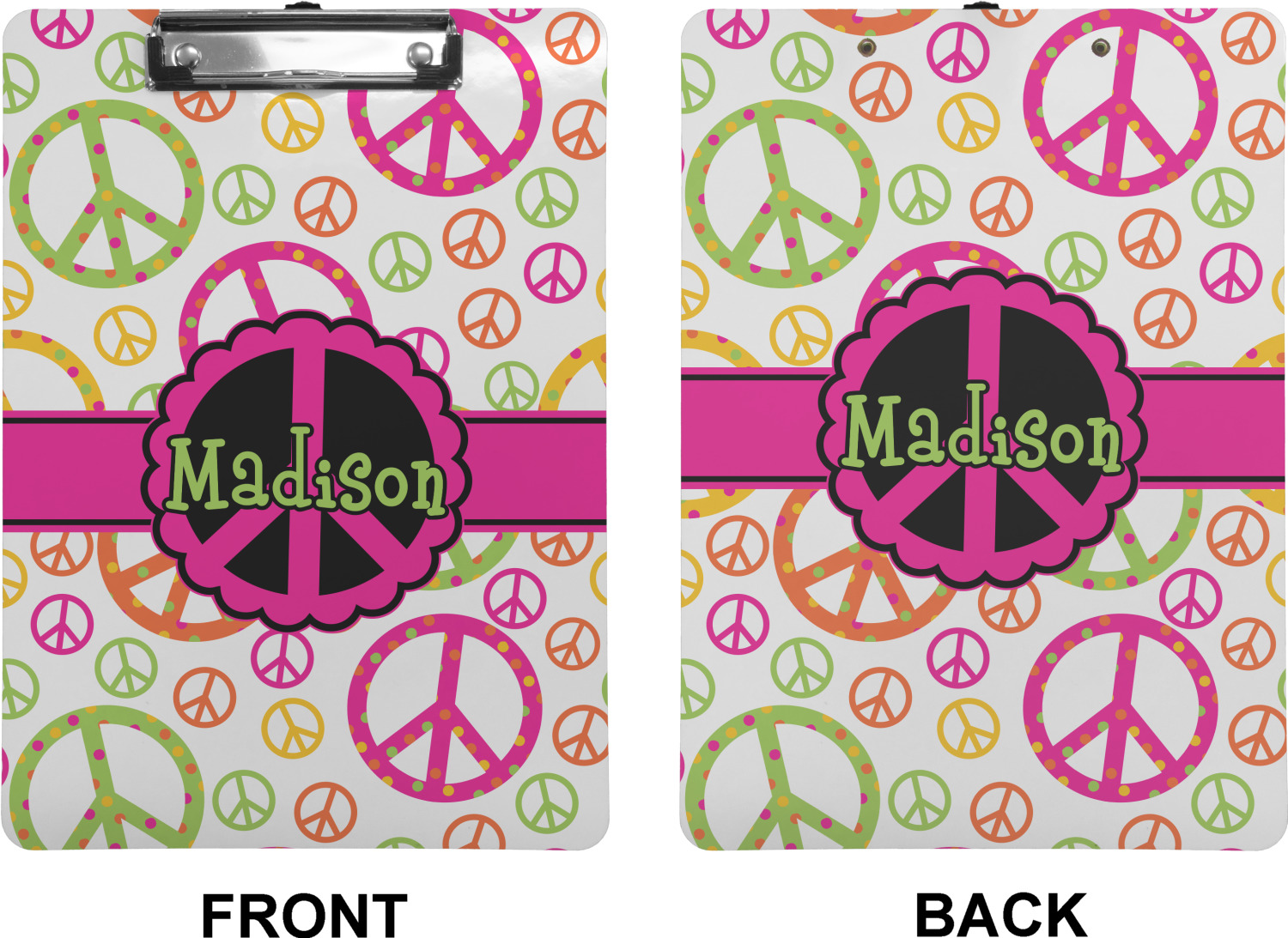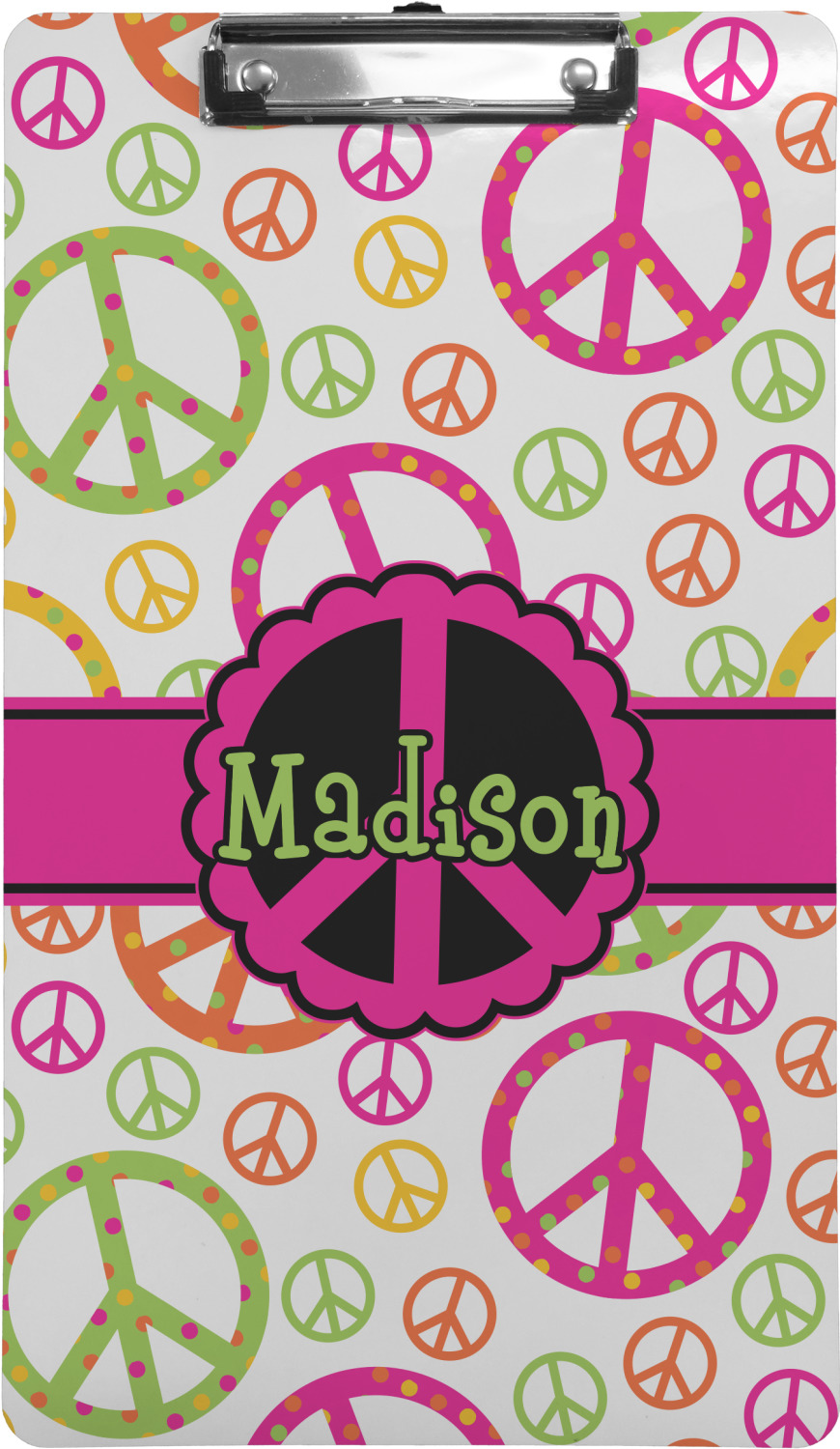 These custom clipboards are made from a strong hardboard and are coated with a glossy finish that accentuates the colors of your design. Alongside a retractable hook at its top, these decorative clipboards also feature sturdy clips to secure several sheets of paper. We sell these clipboards in two separate sizes. Our letter size measures at 12.5" L x 9" W, while our legal clipboard is approximately 15.5" L x 9" W. On both models, your personalization is printed on both sides of this clipboard and can be customized individually.