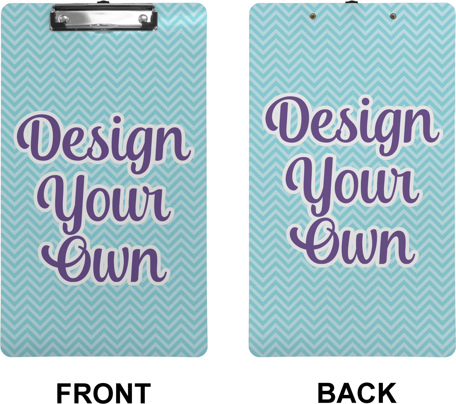 These custom clipboards are made from a strong hardboard and are coated with a glossy finish that accentuates the colors of your design. Alongside a retractable hook at its top, these decorative clipboards also feature sturdy clips to secure several sheets of paper. We sell these clipboards in two separate sizes. Our letter size measures at 12.5" L x 9" W, while our legal clipboard is approximately 15.5" L x 9" W. On both models, your personalization is printed on both sides of this clipboard and can be customized individually.