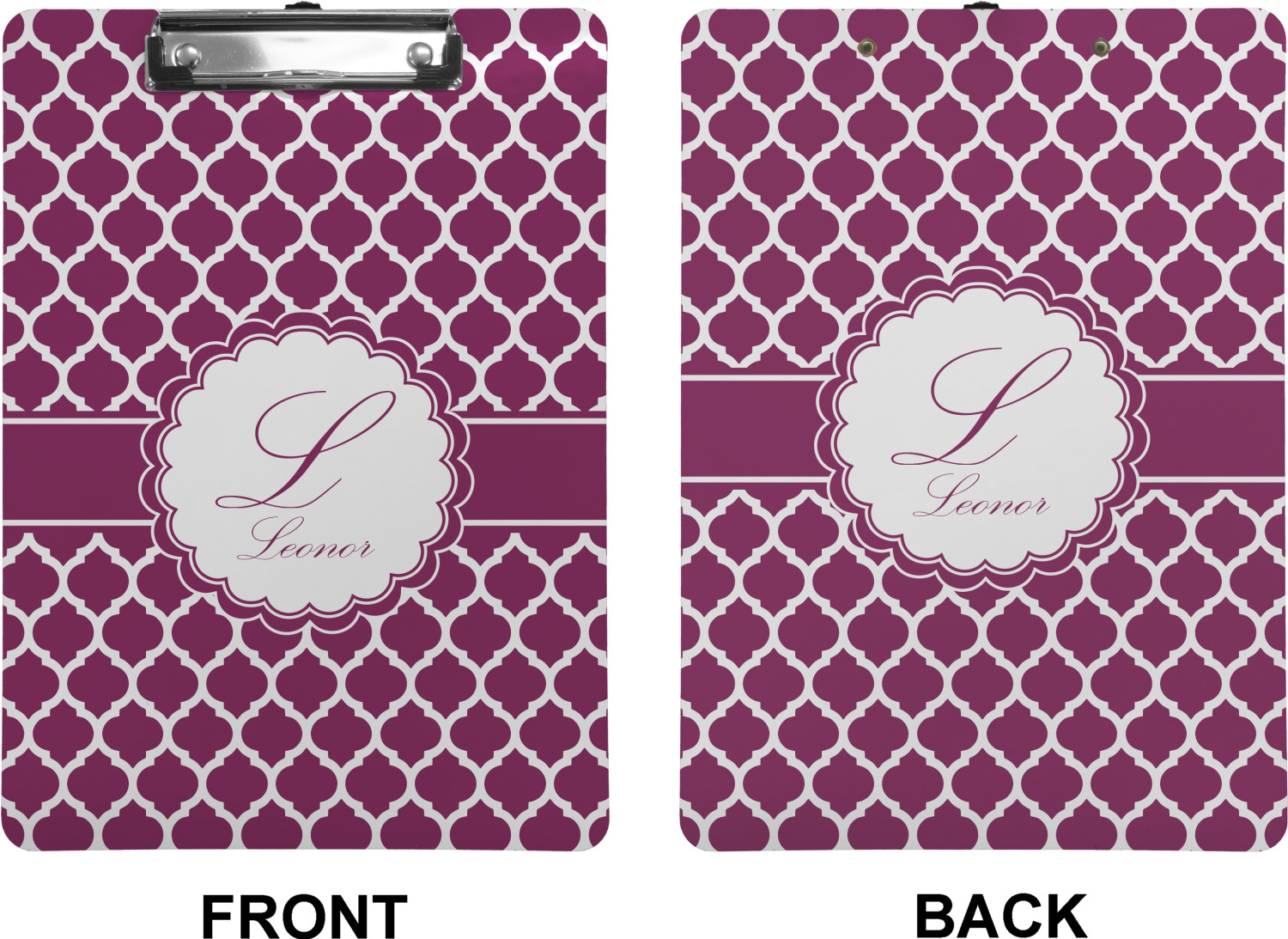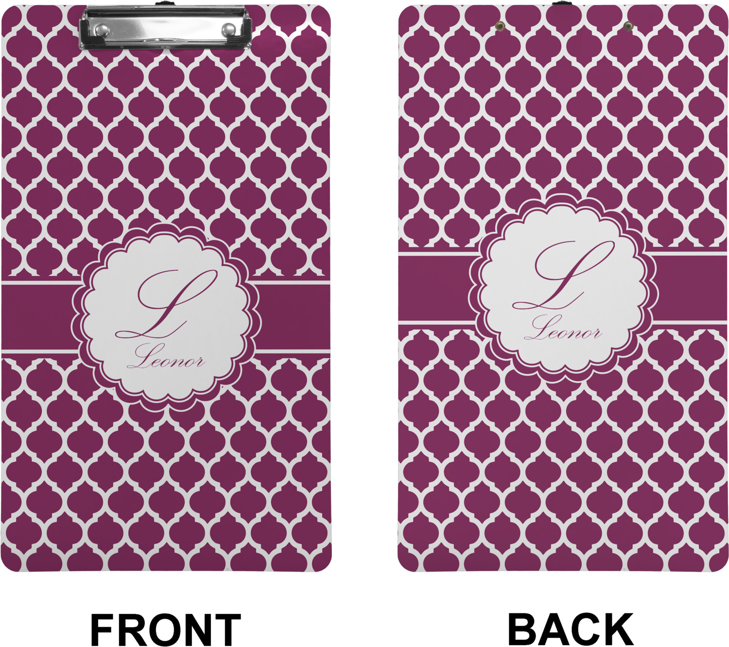 These custom clipboards are made from a strong hardboard and are coated with a glossy finish that accentuates the colors of your design. Alongside a retractable hook at its top, these decorative clipboards also feature sturdy clips to secure several sheets of paper. We sell these clipboards in two separate sizes. Our letter size measures at 12.5" L x 9" W, while our legal clipboard is approximately 15.5" L x 9" W. On both models, your personalization is printed on both sides of this clipboard and can be customized individually.