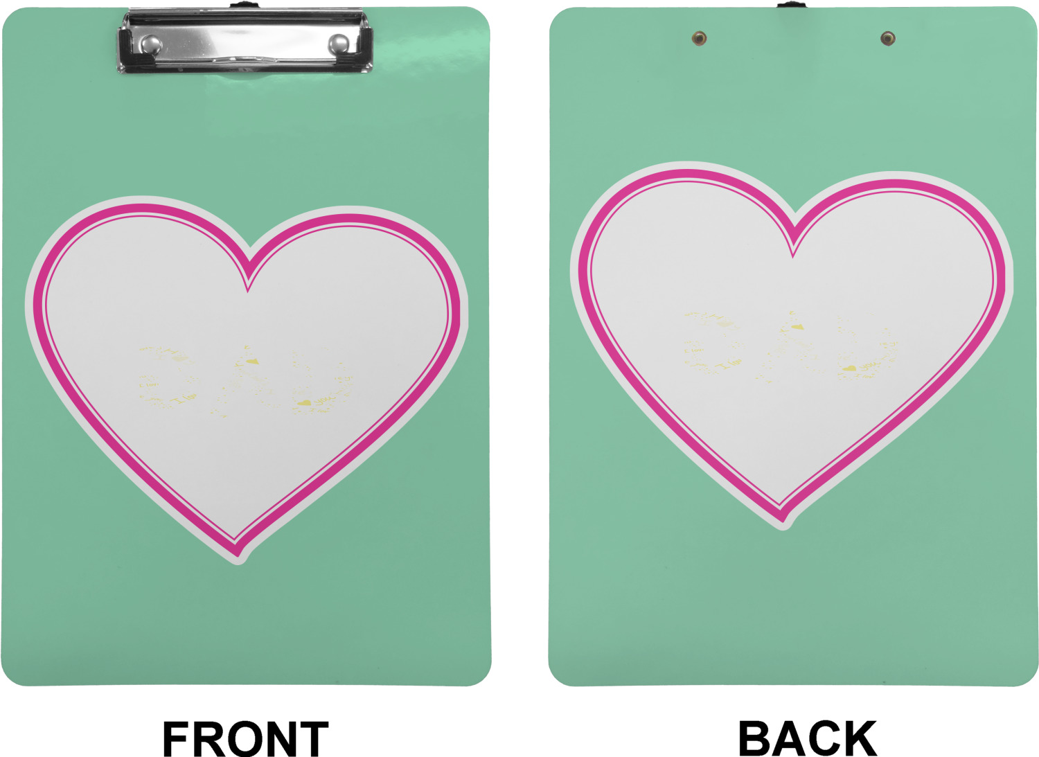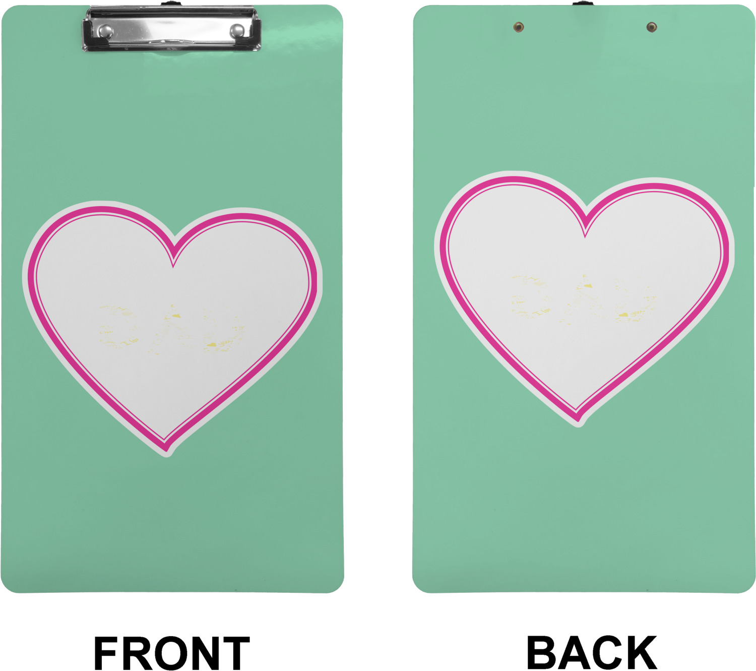 These custom clipboards are made from a strong hardboard and are coated with a glossy finish that accentuates the colors of your design. Alongside a retractable hook at its top, these decorative clipboards also feature sturdy clips to secure several sheets of paper. We sell these clipboards in two separate sizes. Our letter size measures at 12.5" L x 9" W, while our legal clipboard is approximately 15.5" L x 9" W. On both models, your personalization is printed on both sides of this clipboard and can be customized individually.