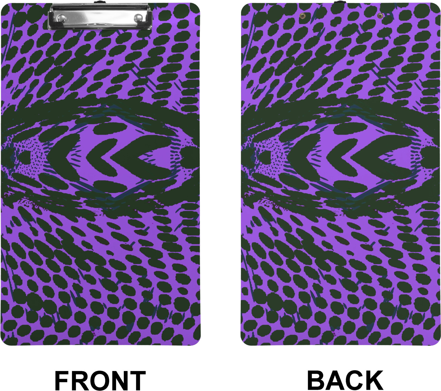 These custom clipboards are made from a strong hardboard and are coated with a glossy finish that accentuates the colors of your design. Alongside a retractable hook at its top, these decorative clipboards also feature sturdy clips to secure several sheets of paper. We sell these clipboards in two separate sizes. Our letter size measures at 12.5" L x 9" W, while our legal clipboard is approximately 15.5" L x 9" W. On both models, your personalization is printed on both sides of this clipboard and can be customized individually.