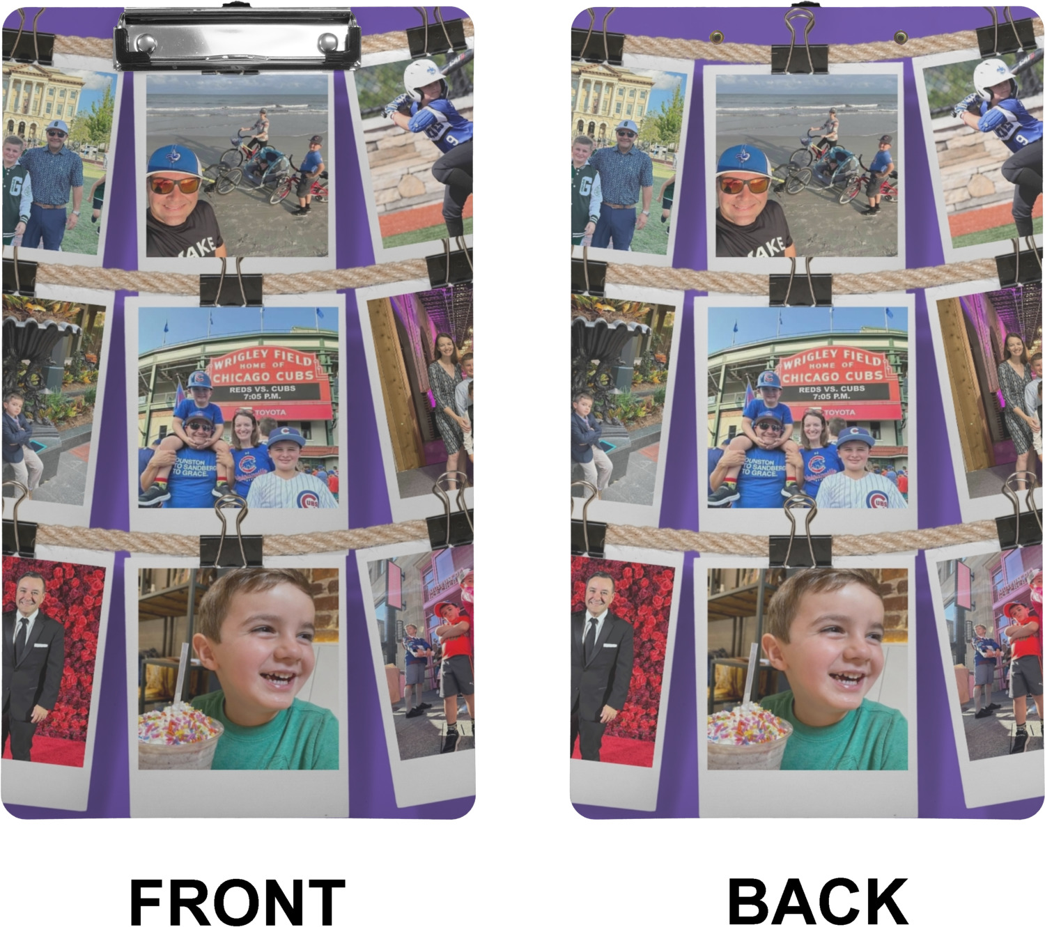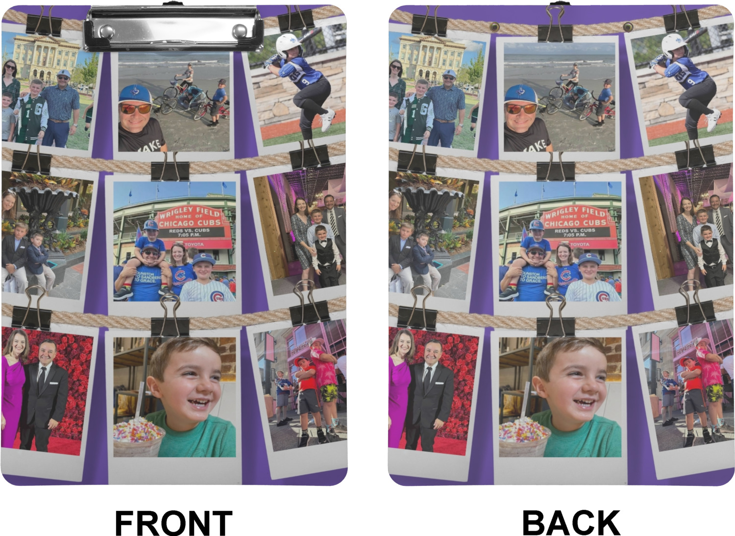 These custom clipboards are made from a strong hardboard and are coated with a glossy finish that accentuates the colors of your design. Alongside a retractable hook at its top, these decorative clipboards also feature sturdy clips to secure several sheets of paper. We sell these clipboards in two separate sizes. Our letter size measures at 12.5" L x 9" W, while our legal clipboard is approximately 15.5" L x 9" W. On both models, your personalization is printed on both sides of this clipboard and can be customized individually.