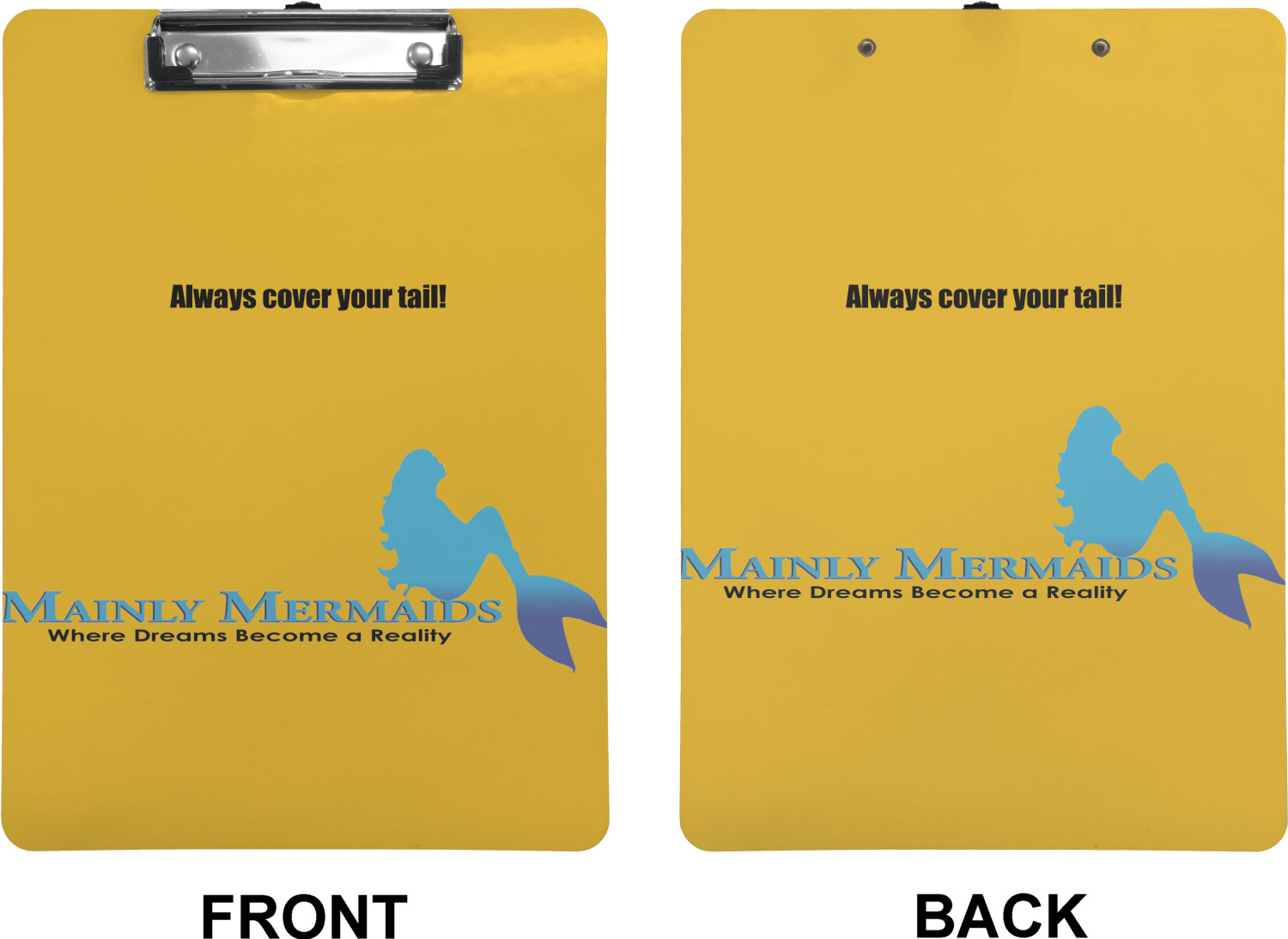 These custom clipboards are made from a strong hardboard and are coated with a glossy finish that accentuates the colors of your design. Alongside a retractable hook at its top, these decorative clipboards also feature sturdy clips to secure several sheets of paper. We sell these clipboards in two separate sizes. Our letter size measures at 12.5" L x 9" W, while our legal clipboard is approximately 15.5" L x 9" W. On both models, your personalization is printed on both sides of this clipboard and can be customized individually.