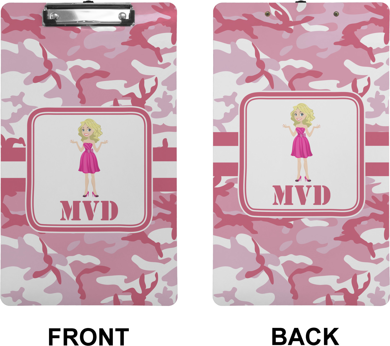 These custom clipboards are made from a strong hardboard and are coated with a glossy finish that accentuates the colors of your design. Alongside a retractable hook at its top, these decorative clipboards also feature sturdy clips to secure several sheets of paper. We sell these clipboards in two separate sizes. Our letter size measures at 12.5" L x 9" W, while our legal clipboard is approximately 15.5" L x 9" W. On both models, your personalization is printed on both sides of this clipboard and can be customized individually.