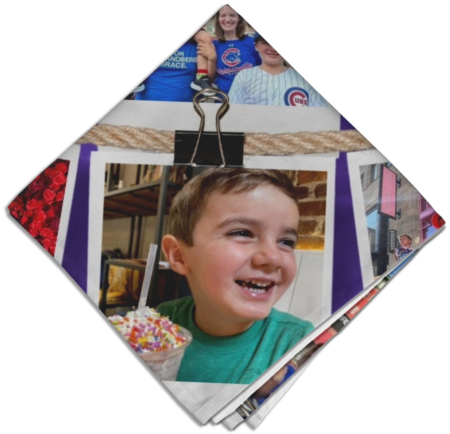 Each customizable cloth napkin is a polyester material guaranteed for long-term use. Since our napkins are cloth, it serves as a great reusable and eco-friendly dining decor. We sell personalized napkins individually or as a set of 4! Print your own unique design on all four napkins, or create four individual designs for each napkin! We offer two different napkin sizes - Cocktail napkins (approx. 10 x 10) and Dinner napkins (approx. 20 x 20). We print your design on one side, perfect for displaying your custom designed lunch napkins in any fold or table setting!