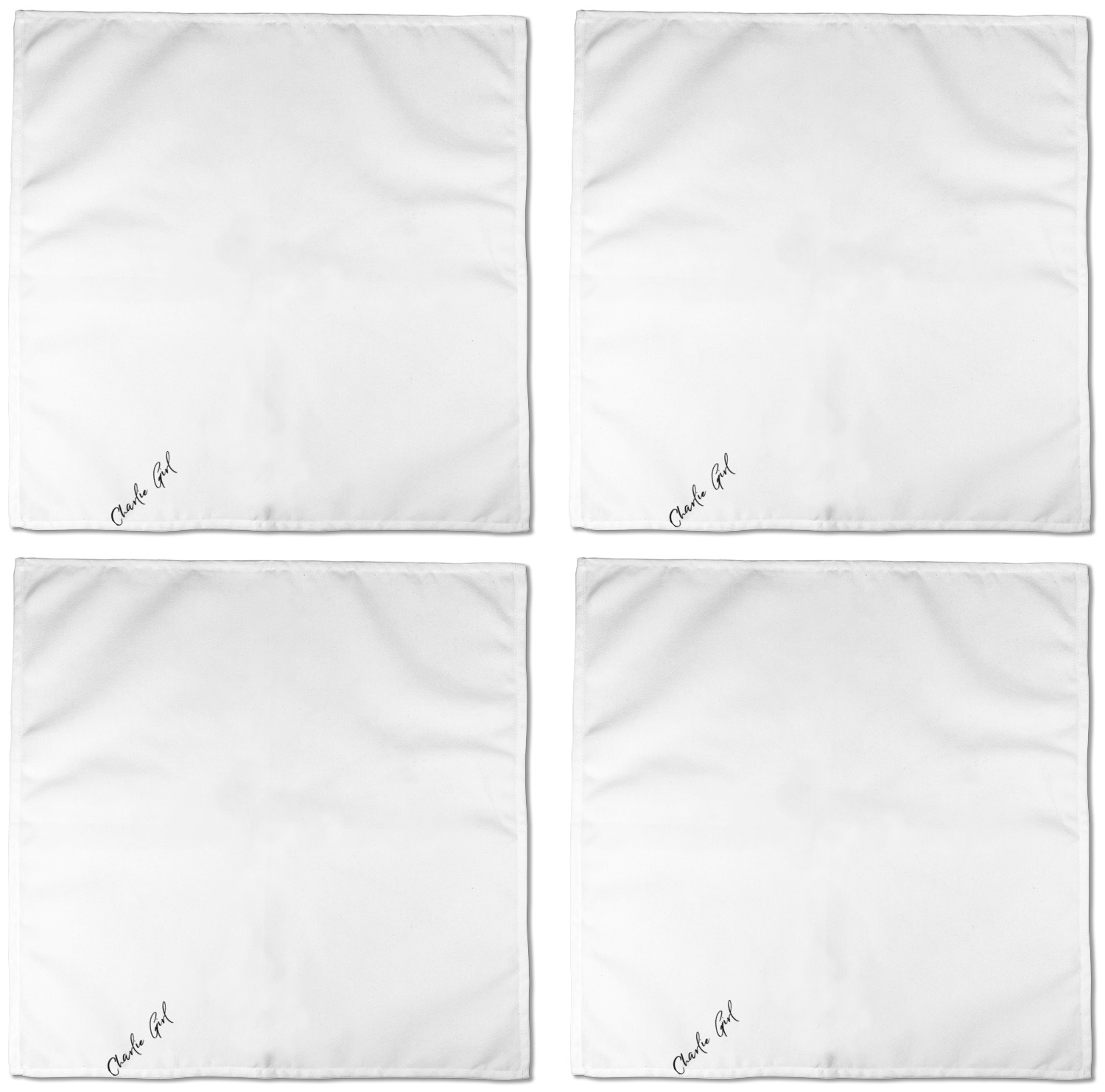 Each customizable cloth napkin is a polyester material guaranteed for long-term use. Since our napkins are cloth, it serves as a great reusable and eco-friendly dining decor. We sell personalized napkins individually or as a set of 4! Print your own unique design on all four napkins, or create four individual designs for each napkin! We offer two different napkin sizes - Cocktail napkins (approx. 10 x 10) and Dinner napkins (approx. 20 x 20). We print your design on one side, perfect for displaying your custom designed lunch napkins in any fold or table setting!