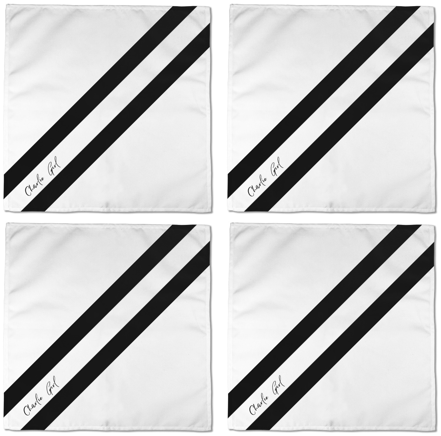 Each customizable cloth napkin is a polyester material guaranteed for long-term use. Since our napkins are cloth, it serves as a great reusable and eco-friendly dining decor. We sell personalized napkins individually or as a set of 4! Print your own unique design on all four napkins, or create four individual designs for each napkin! We offer two different napkin sizes - Cocktail napkins (approx. 10 x 10) and Dinner napkins (approx. 20 x 20). We print your design on one side, perfect for displaying your custom designed lunch napkins in any fold or table setting!