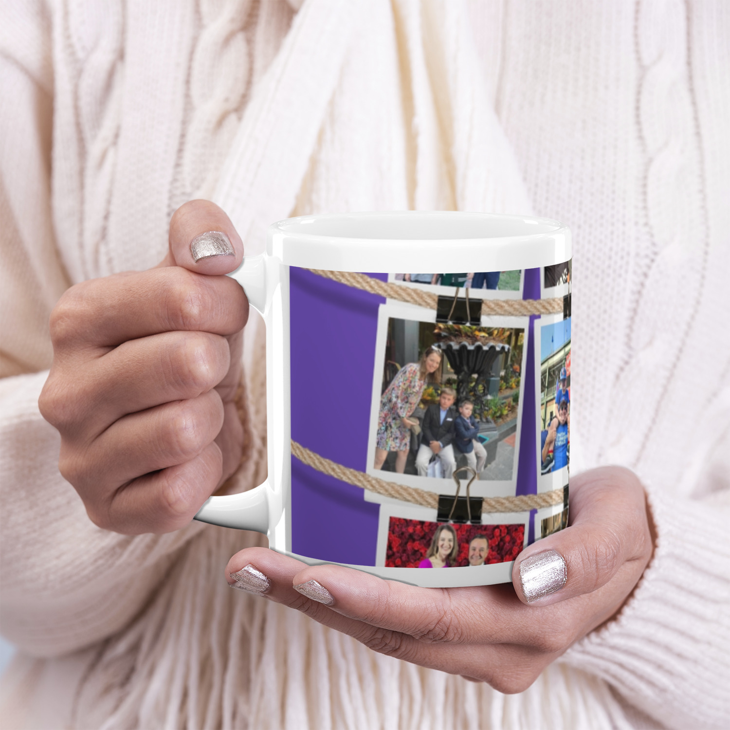 Our ceramic mugs have your design or photo printed along the surface with a gloss finish. The ceramic material of our mugs is dishwasher and microwave safe so you can reheat your tea or coffee if needed! We offer two different base colors with multiple mug sizes. The white ceramic mugs come in three size options - 11 oz., 15 oz., and 20 oz. Our black ceramic mugs are sold in either 11 oz. or 15 oz. sizes.