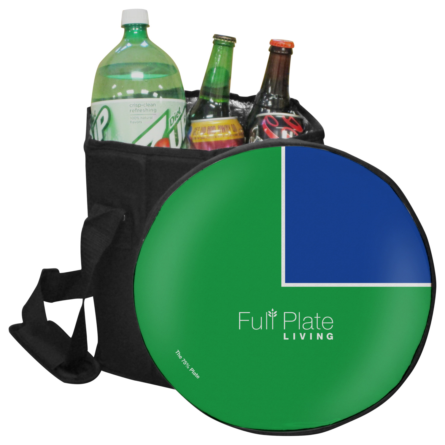 Our collapsible insulated coolers feature a unique six-sided hexagon shape, are lightweight, durable and can be turned into a seat. This cooler is fully insulated with silver foil lining to keep food and drinks hot or cold, and has a 12-quart capacity. Although this cooler collapses for easy transport, hidden inside are composition panels made of sturdy wood that give the frame strength and allow this cooler to be used as a seat. Simply sit down on the personalized cover and give your legs a break! (Maximum weight capacity of 200 pounds.)