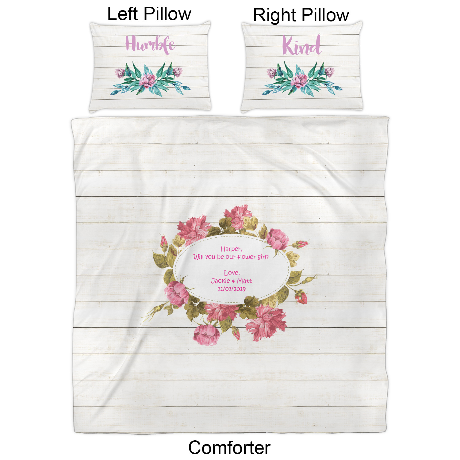 We have hundreds of different design templates for you to choose from Each design can be customized to your exact specifications. Not only can you customize the comforter, but you can also customize each pillow sham e.g. for a queen comforter set you have have Mr & Mrs pillow shams with the last name on comforter.