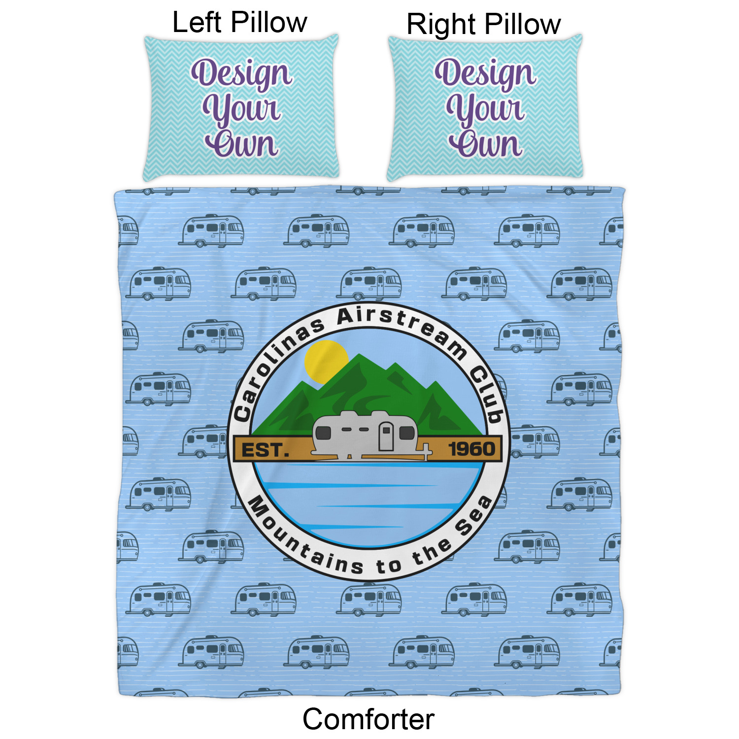 We have hundreds of different design templates for you to choose from Each design can be customized to your exact specifications. Not only can you customize the comforter, but you can also customize each pillow sham e.g. for a queen comforter set you have have Mr & Mrs pillow shams with the last name on comforter.