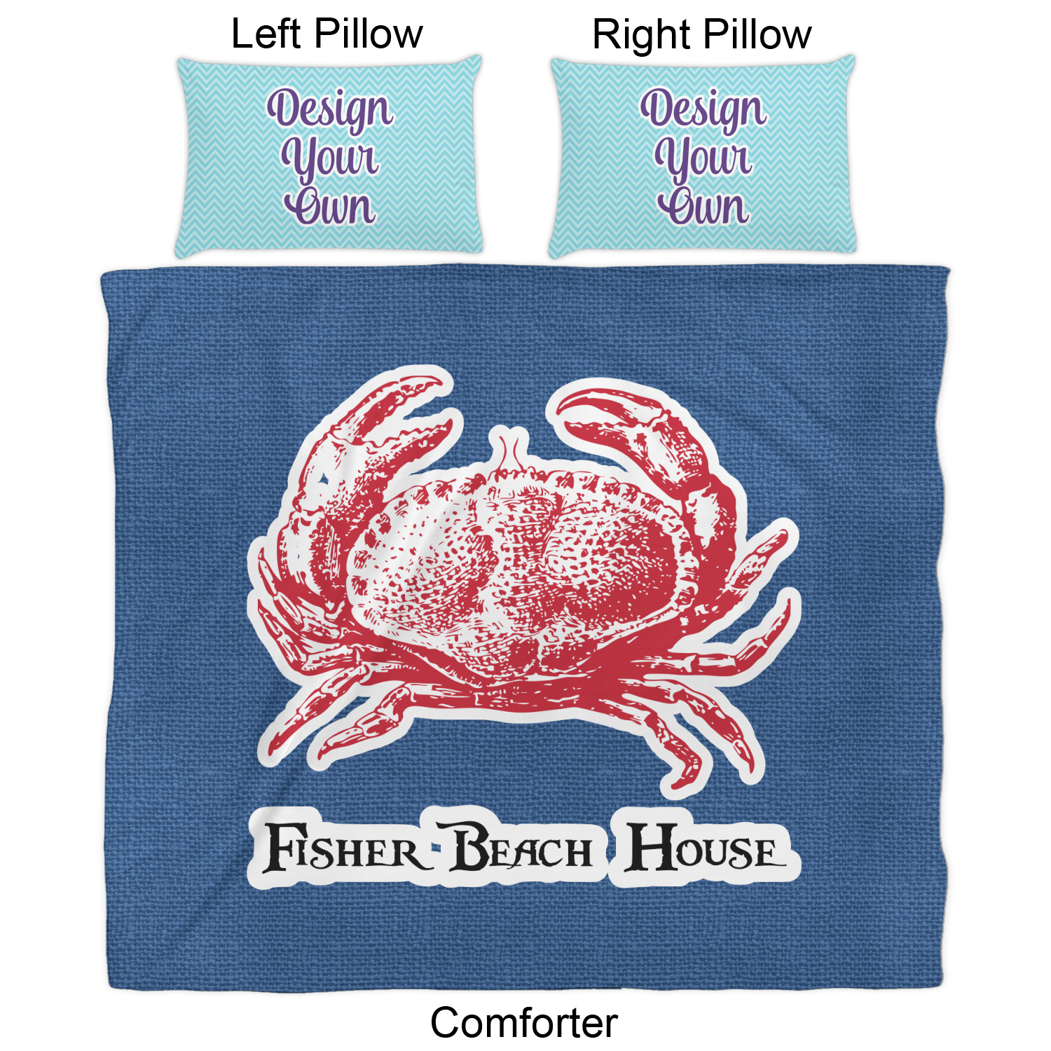 We have hundreds of different design templates for you to choose from Each design can be customized to your exact specifications. Not only can you customize the comforter, but you can also customize each pillow sham e.g. for a queen comforter set you have have Mr & Mrs pillow shams with the last name on comforter.