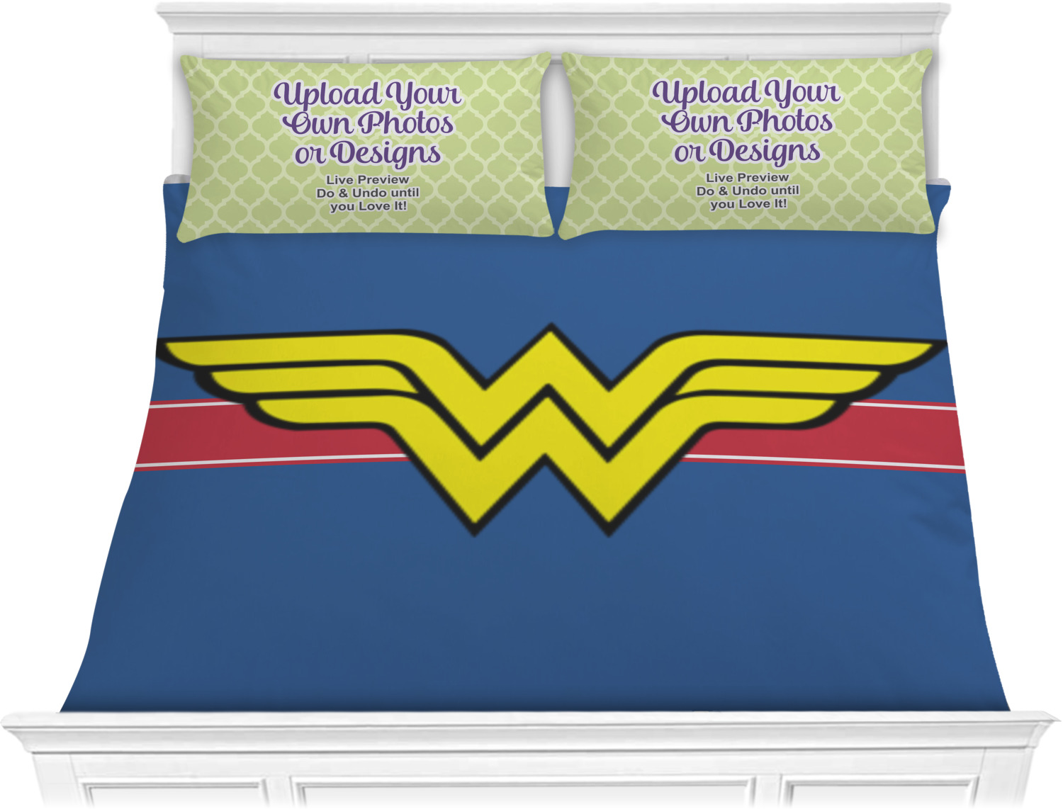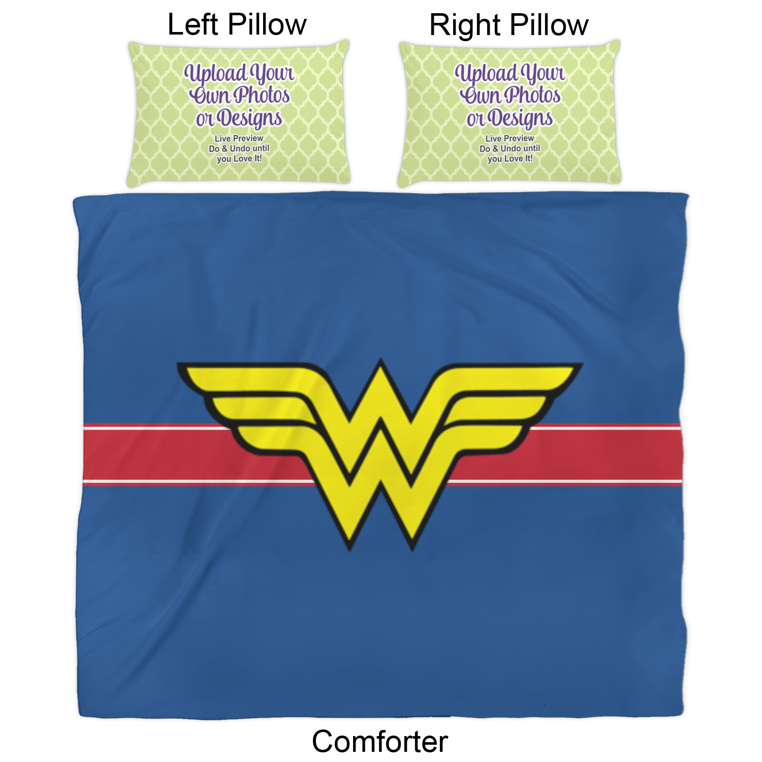 We have hundreds of different design templates for you to choose from Each design can be customized to your exact specifications. Not only can you customize the comforter, but you can also customize each pillow sham e.g. for a queen comforter set you have have Mr & Mrs pillow shams with the last name on comforter.