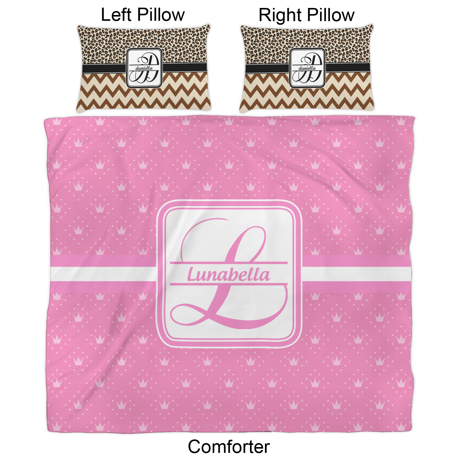 We have hundreds of different design templates for you to choose from Each design can be customized to your exact specifications. Not only can you customize the comforter, but you can also customize each pillow sham e.g. for a queen comforter set you have have Mr & Mrs pillow shams with the last name on comforter.