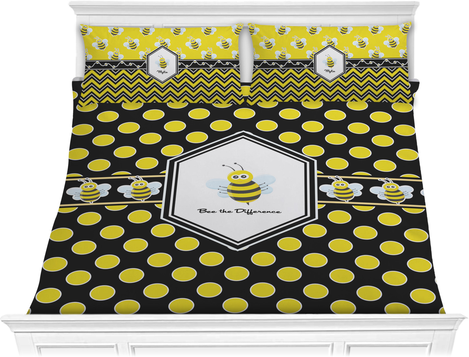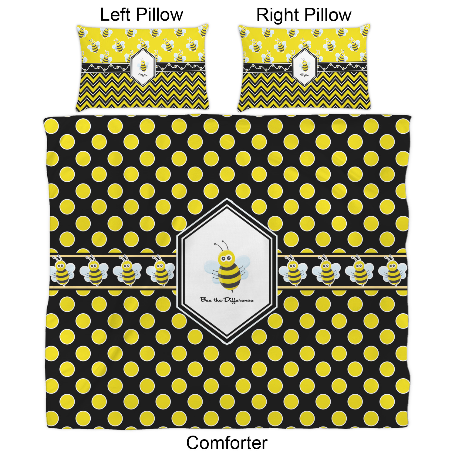 We have hundreds of different design templates for you to choose from Each design can be customized to your exact specifications. Not only can you customize the comforter, but you can also customize each pillow sham e.g. for a queen comforter set you have have Mr & Mrs pillow shams with the last name on comforter.