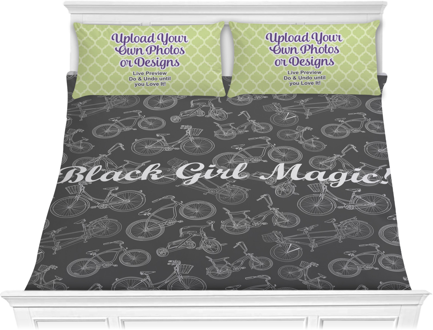 We have hundreds of different design templates for you to choose from Each design can be customized to your exact specifications. Not only can you customize the comforter, but you can also customize each pillow sham e.g. for a queen comforter set you have have Mr & Mrs pillow shams with the last name on comforter.
