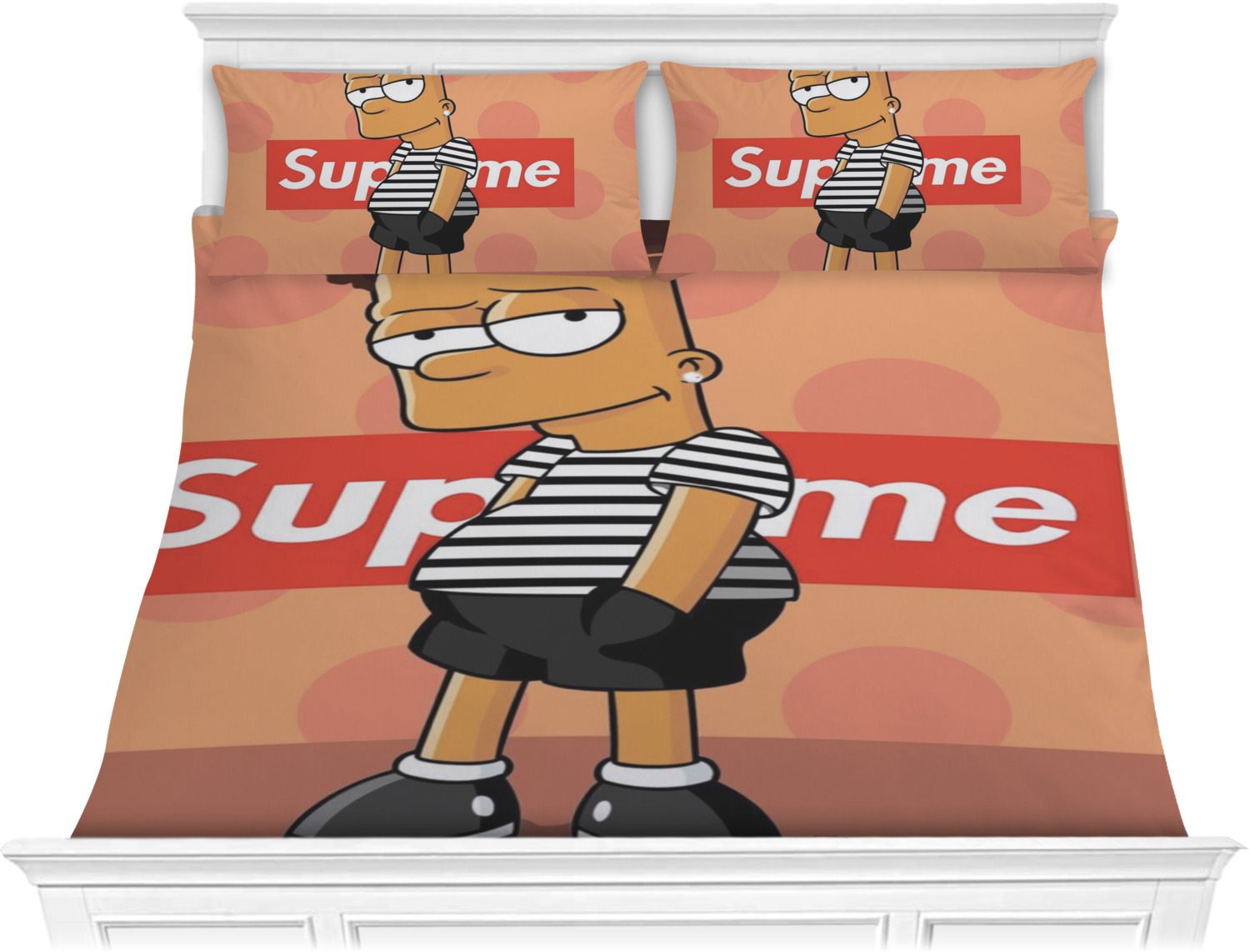 Both, the comforter and shams are digitally printed; all the fabric is then cut and sewn to make your custom comforter or comforter set.