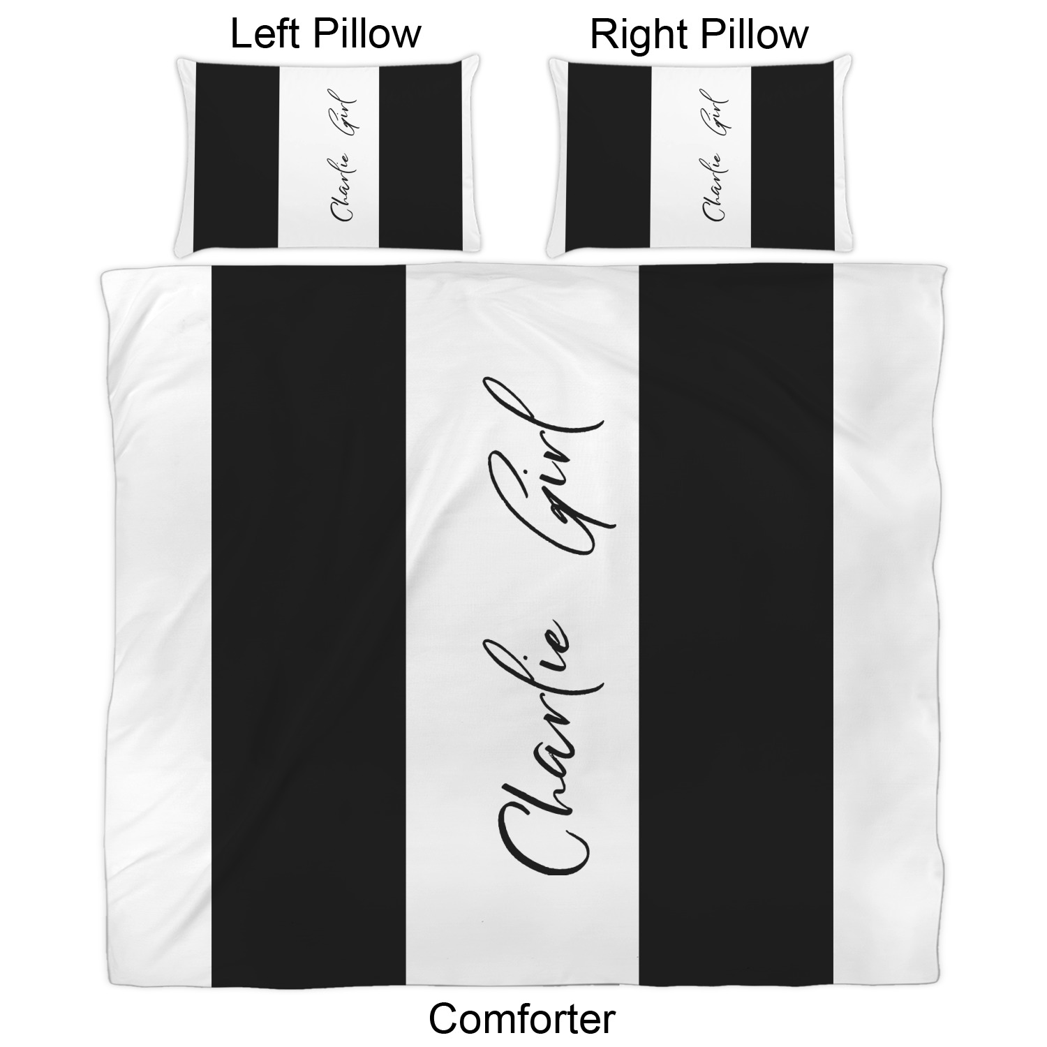 We have hundreds of different design templates for you to choose from Each design can be customized to your exact specifications. Not only can you customize the comforter, but you can also customize each pillow sham e.g. for a queen comforter set you have have Mr & Mrs pillow shams with the last name on comforter.