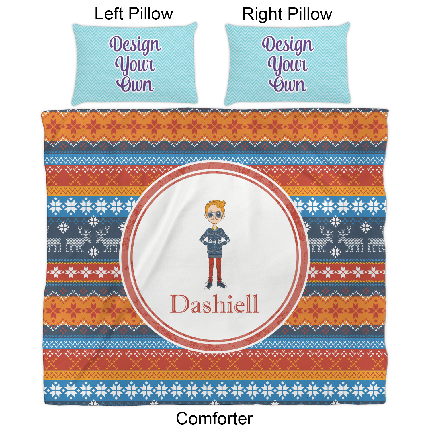 We have hundreds of different design templates for you to choose from Each design can be customized to your exact specifications. Not only can you customize the comforter, but you can also customize each pillow sham e.g. for a queen comforter set you have have Mr & Mrs pillow shams with the last name on comforter.